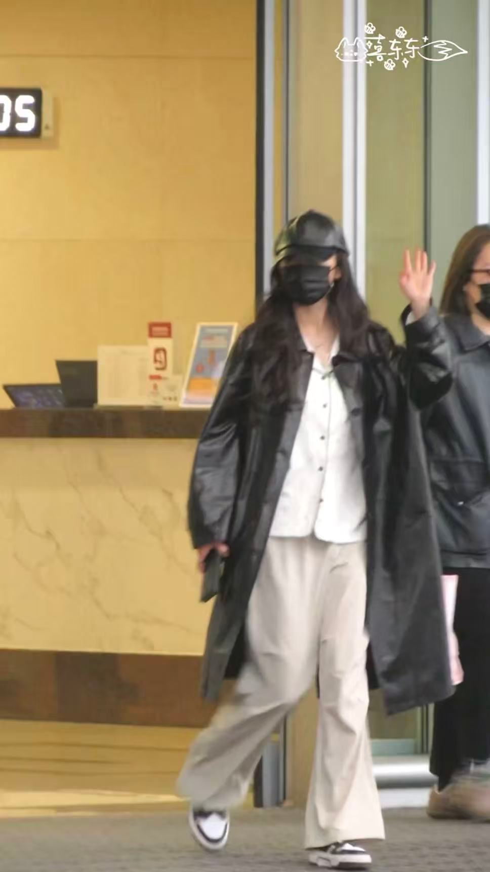 杨幂睡衣外搭黑大衣look,满分休闲服造型,是连轴转的幂姐,归国路透状态也是满分的元气啊,欢迎回家,好好休息呀![哇]