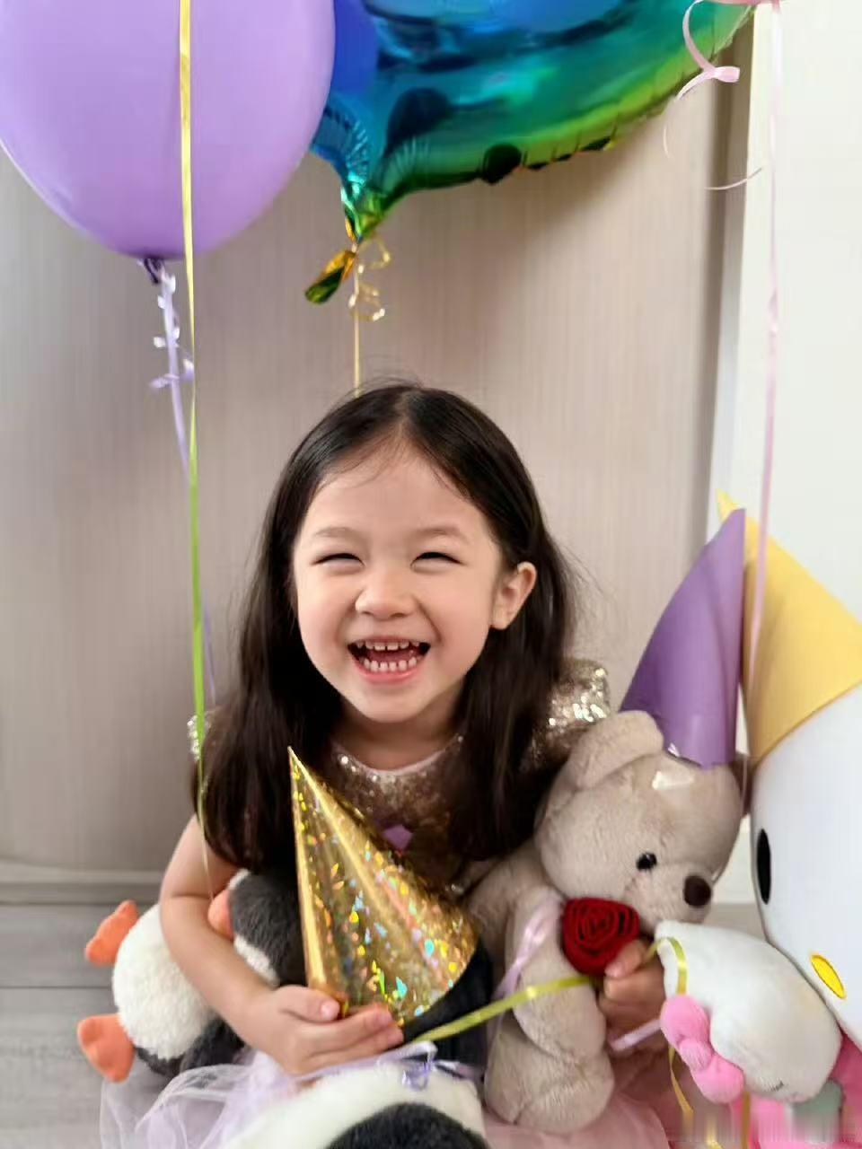 钟嘉欣晒小女儿庆生照钟嘉欣晒小女儿庆生照,好得意好得意,生日快乐,健康成长钟嘉欣