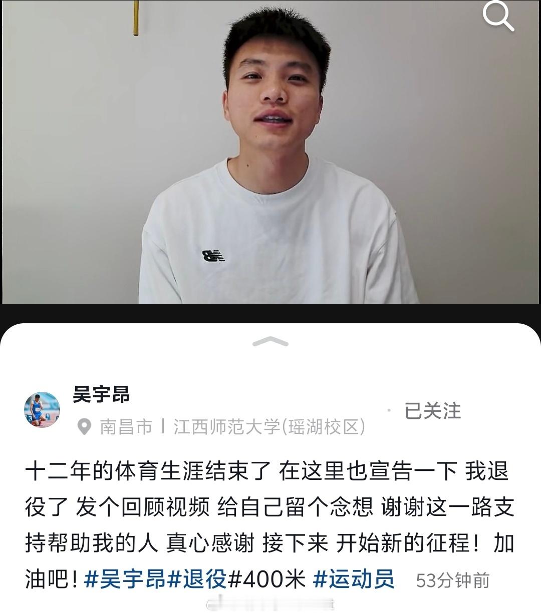 上届全运会400米奖牌得主,吴宇昂宣布退役