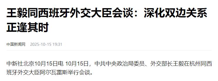 中国和西班牙谈妥了 10月15日,中国外交部长王毅在杭州和西班牙外交大臣阿尔瓦雷斯举行会谈,双方一致同意拓展双边领域合作,助力经济持续增长! 西班牙这次访华,表面上看是一场平平无奇的外交活动,实则背后藏着欧洲老牌资本主义国家的生存智慧,咱们先从数据说起,2024年中西双边货物贸易额首次突破500亿美元,中国成了西班牙在欧盟外的第一大贸易伙伴。 这是什么概念?相当于西班牙每五个出口商品里,就有一个漂洋过海来到中国消费者的购物车,更有意思的是中国企业在2024年对西班牙的投资突然爆发,宣布投资近110亿欧元,是前8年累计金额的两倍,这种双向奔赴的贸易格局,让欧盟那些还在纠结去风险的国家看了直挠头。 其实,西班牙的算盘打得很精,作为欧盟成员国,它既要遵守布鲁塞尔的贸易规则,又要在中美博弈的夹缝中寻找利益最大化,数据显示,2024年欧盟整体对华贸易额下降1.48%,但西班牙逆势增长,硬是把中欧班列(义乌—马德里)变成了自己的黄金通道,这条世界最长的货运线路十年来累计开行超过1500列,光2024年就有大量西班牙橄榄油、伊比利亚火腿通过这条线路进入中国,同时中国的电动汽车、锂电池也源源不断地运往西班牙,这种左手倒右手的操作,让西班牙在欧盟内部成了务实派的代表。 更绝的是,西班牙把自己的传统强项和中国的新三样玩出了化学反应,西班牙是欧洲第二大汽车生产国,但在电动汽车转型上明显落后于中国,怎么办?直接引入中国技术! 2024年4月,奇瑞汽车与西班牙埃布罗公司在巴塞罗那成立合资企业,专门开发电动汽车;7月,远景动力投资建设的磷酸铁锂电池超级工厂破土动工,填补了欧洲在这一领域的空白,这种技术换市场的策略,既避开了欧盟对中国电动车的反补贴调查,又让西班牙本土汽车产业搭上了绿色转型的快车。 当然,西班牙的生存智慧还体现在对欧盟政策的灵活运用上,2025年10月欧盟计划出台新规,要求中企在欧洲投资必须转让技术并本地化生产,但西班牙早就通过曲线救国绕过了这一限制——宁德时代与Stellantis合资的41亿欧元电池工厂,表面上是欧企主导,实际上核心技术仍由中方掌握;中国能建收购的西班牙EAG公司,不仅参与欧洲多个核电站项目,还把业务拓展到了沙特和美国,这种披着欧盟外衣的中资企业,让西班牙在遵守欧盟规则的同时,又能深度绑定中国产业链。 不过,西班牙的精明背后也有隐忧,虽然2024年其经济增长3.2%,远超欧元区平均水平,但高失业率和公共债务问题依然严峻,更麻烦的是西班牙56%的电力来自可再生能源,但储能设施仅占总装机容量的2.65%,2024年4月的全国大停电就暴露了这一短板。 这时候,中国的技术优势就显得尤为重要,中国能建在西班牙的项目已经涉及绿氢、碳捕集等前沿领域,而远景动力的电池工厂未来将为西班牙电网提供关键的储能支持,这种能源互补的合作模式,让西班牙在应对欧盟减排压力的同时,又能降低对俄罗斯能源的依赖。 从长远来看,西班牙的生存智慧其实是在为欧洲寻找第三条道路——既不彻底倒向美国,也不全面拥抱中国,而是通过选择性合作实现利益最大化,这种策略虽然短期内能尝到甜头,但也存在风险,一旦欧盟内部对华强硬派占上风,西班牙可能成为第一个被开刀的对象,不过正如西班牙驻华大使贝坦索斯所说:我们不是在选边站,我们是在为欧洲的未来下注,而这个赌注的筹码,正是西班牙与中国日益紧密的经济纽带。 总的来说,中西这次谈妥了,表面上是贸易额的突破,实则是一场地缘经济的阳谋,西班牙用自己的传统优势换来了中国的未来技术,中国则通过西班牙这个跳板渗透进欧洲市场,这种各取所需的合作模式,让那些还在纠结脱钩的国家看了直眼红。 或许,这才是真正的生存智慧——在这个充满不确定性的世界里,能把危机转化为机遇的,才是真正的赢家。