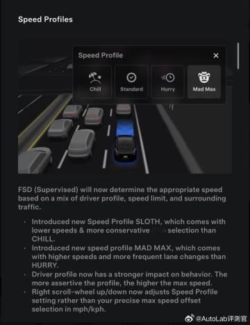 特斯拉FSD新上线了疯狂麦克斯(Mad Max)模式,它代替了原本的 "HURRY" 模式,听这个名字你就知道,它在变道和速度方面有多激进了