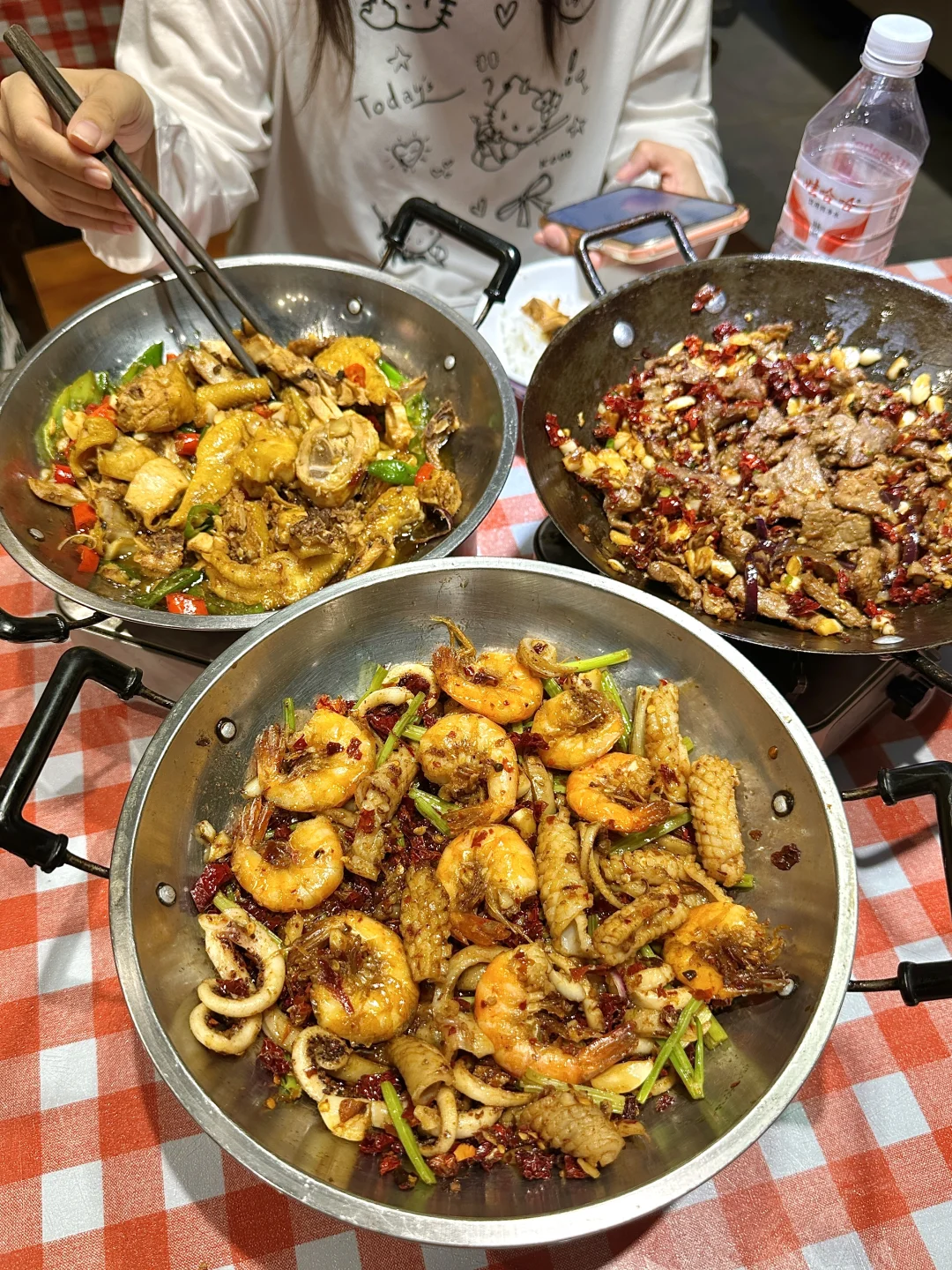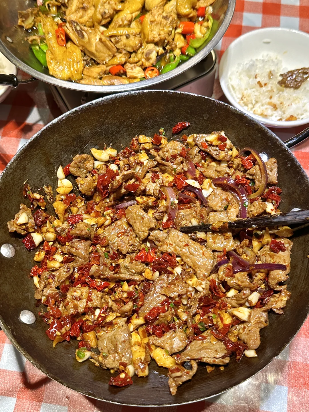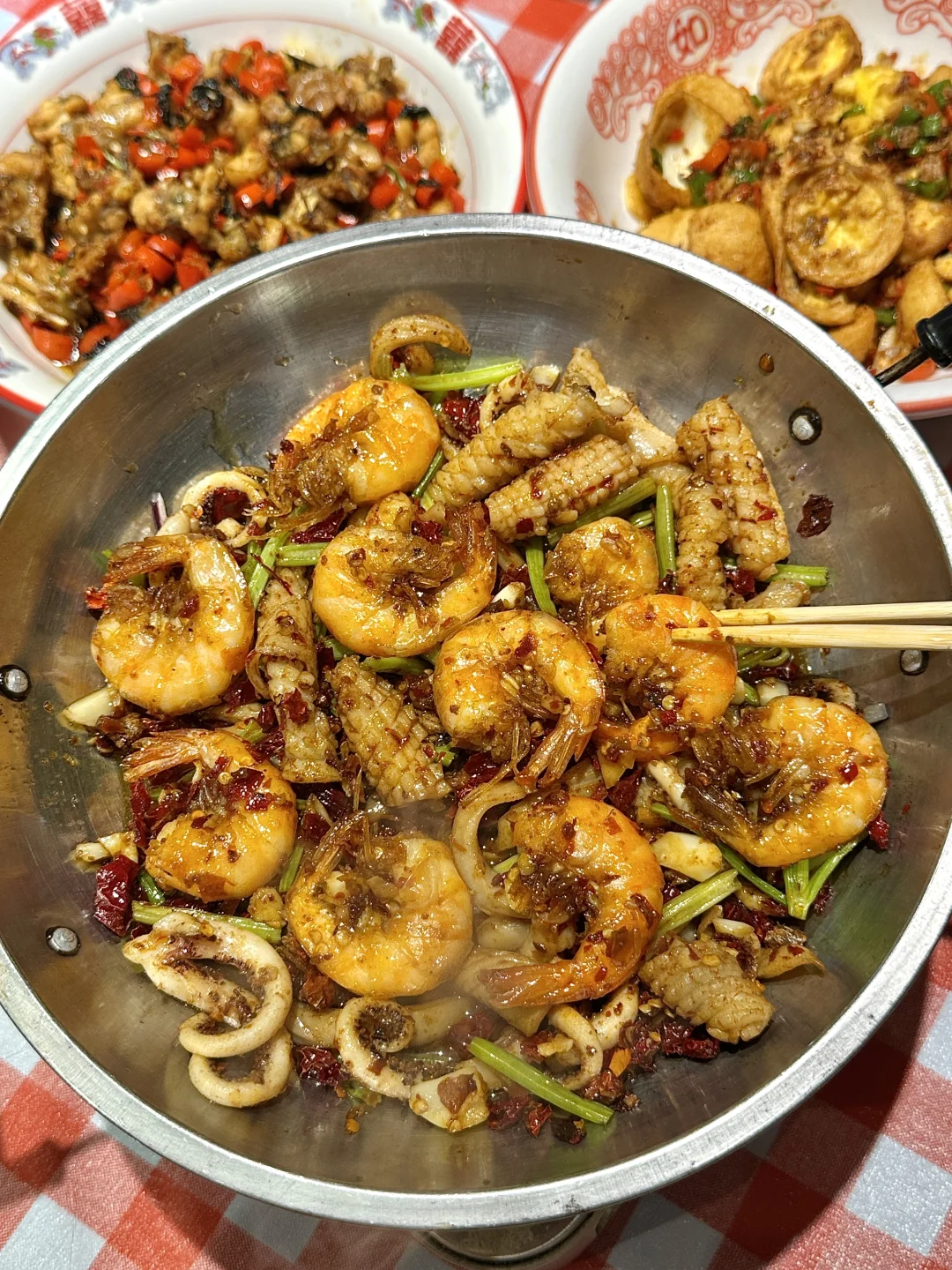 湘菜都巨下饭好吃啊!现点现炒的紫苏爆牛蛙、铁锅牛肉都好入味!火候也刚刚好!吃得出满满锅气……记得再点份干锅鱿鱼虾!一吃一个不吱声(叫:鱼鸭公社)