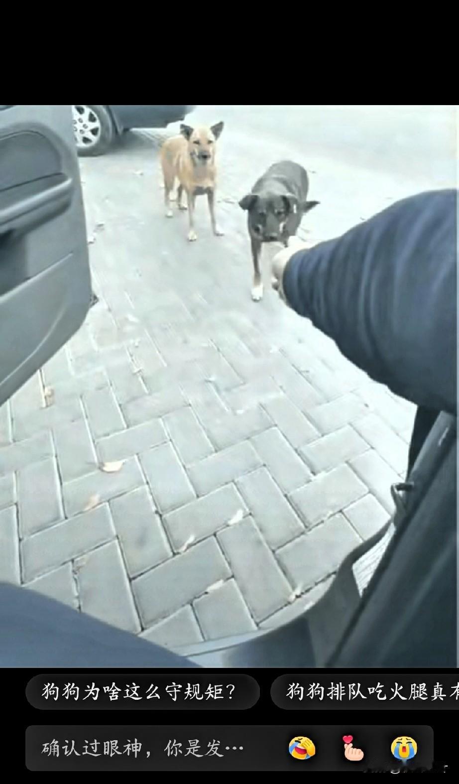 有礼貌的狗子”男子开车出门在路边看到有三条流浪狗,安安静静地待在一起,没有四处乱窜。 大哥想起车上还剩几根火腿,便停下车,拿着食物轻轻打开了车门。 接下来的画面,连大哥都忍不住笑了!三只狗狗没有丝毫争抢,反而自发排成了一列“小队伍”。最前面的狗狗先是试探性地往前凑了凑,确认大哥没有恶意后,才小心翼翼地叼走一块火腿,转身蹲到旁边慢慢吃; 中间的狗狗紧随其后,动作轻得像怕惊扰到谁;最后那只最小的狗狗,叼到火腿后还回头望了望大哥,小尾巴轻轻晃了晃,模样乖巧又惹人疼。 网友们看了纷纷感慨:“这哪是流浪狗,分明是懂规矩的小天使!”可仔细想想,流浪动物的“礼貌”从来不是天生的。它们或许曾在一次次觅食中受过委屈,或许曾因争抢食物被驱赶,所以才学会用最温顺的姿态,对待每一份来之不易的善意。 大哥随手递出的火腿是举手之劳,却是狗狗们寒冬里的慰藉;而狗狗们的乖巧回应,又成了治愈人心的良药。 善意从来都是相互的,你对世界释放温柔,世界也会回馈你温暖。为善良的大哥点赞,也愿所有流浪的毛孩子,都能被世界温柔以待!你有没有遇见过让你暖心的流浪动物?