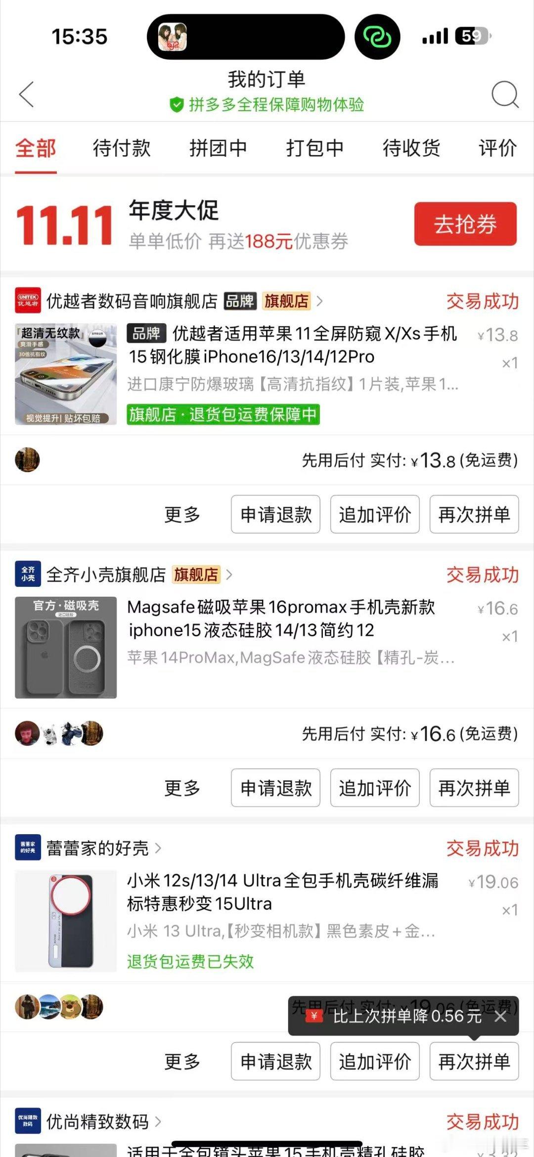 翻了翻购物截图全是回忆杀:第一次用pxx拼的9.9包邮小电锅,陪我熬过了大一时光,甚至现在用的手机都是用的pxx的百亿补贴买的,现在连爸妈都学会蹲“多多好特产”,说新鲜水果第二天就到,运费还特便宜。pxx这几年肉眼可见的实在,难怪全家都成了忠实粉