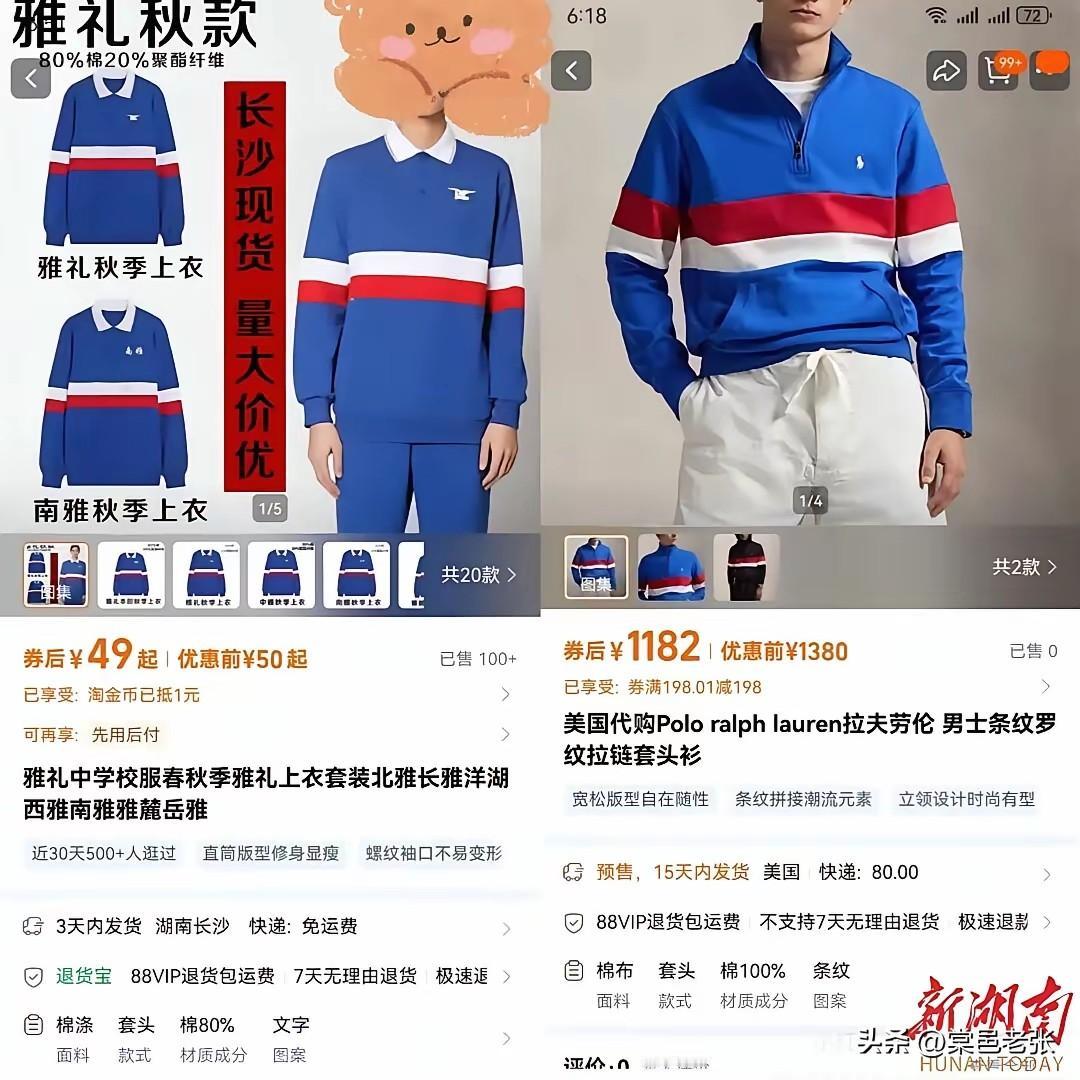 网友在拉夫劳伦门店拍到的POLO衫,与长沙雅礼中学秋季校服酷似“双胞胎”。二者均