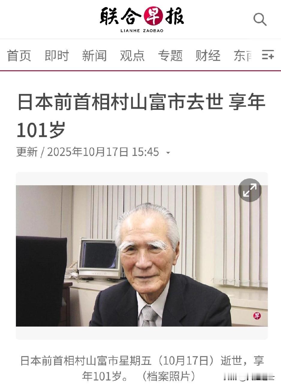 日本前首相村山富市去世,享年101岁。 村山富市是首位到访卢沟桥和中国人民抗日