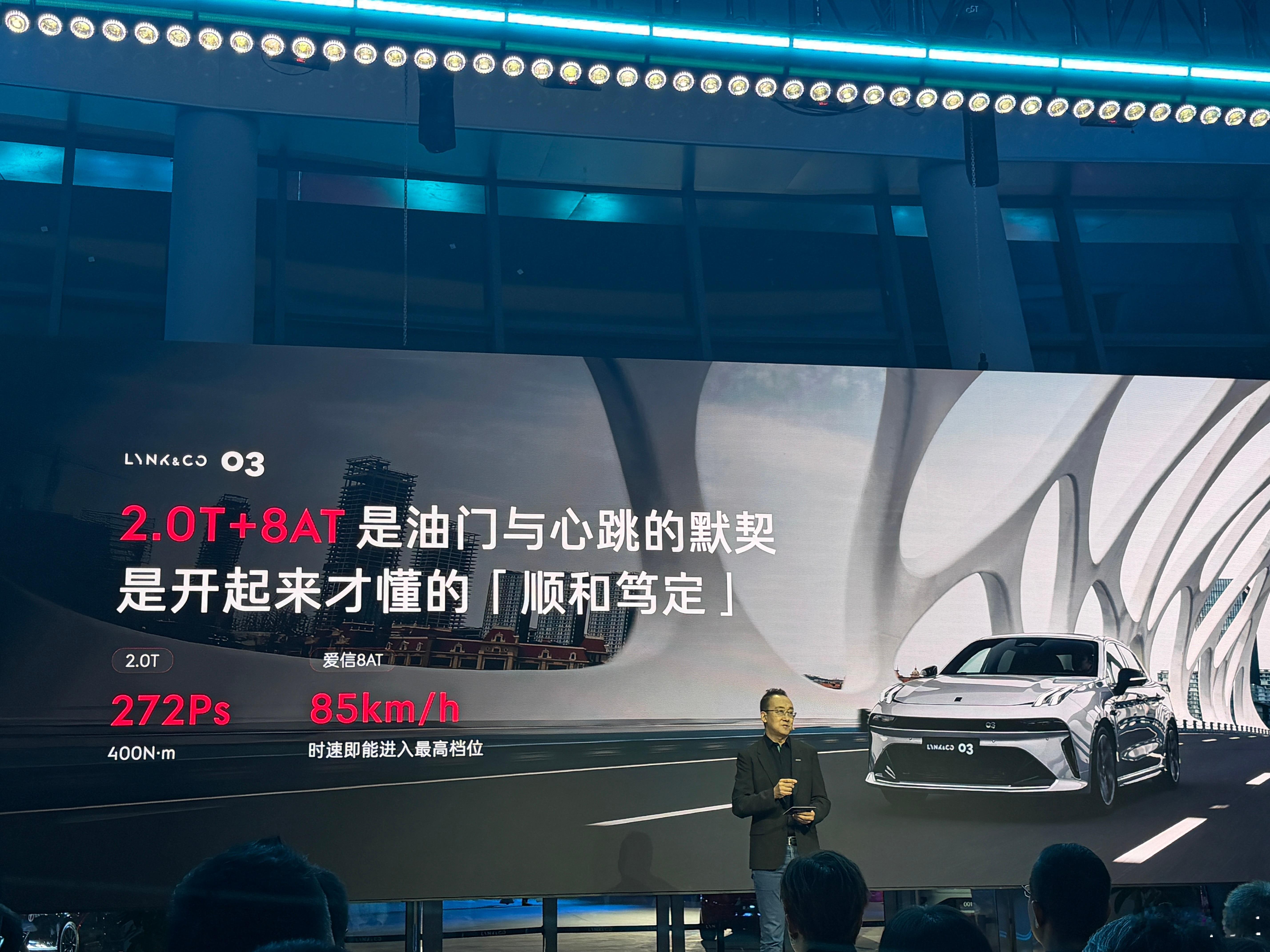 领克03搭载2.0T+8AT,新车动力为272Ps,最大扭矩为400N·m。