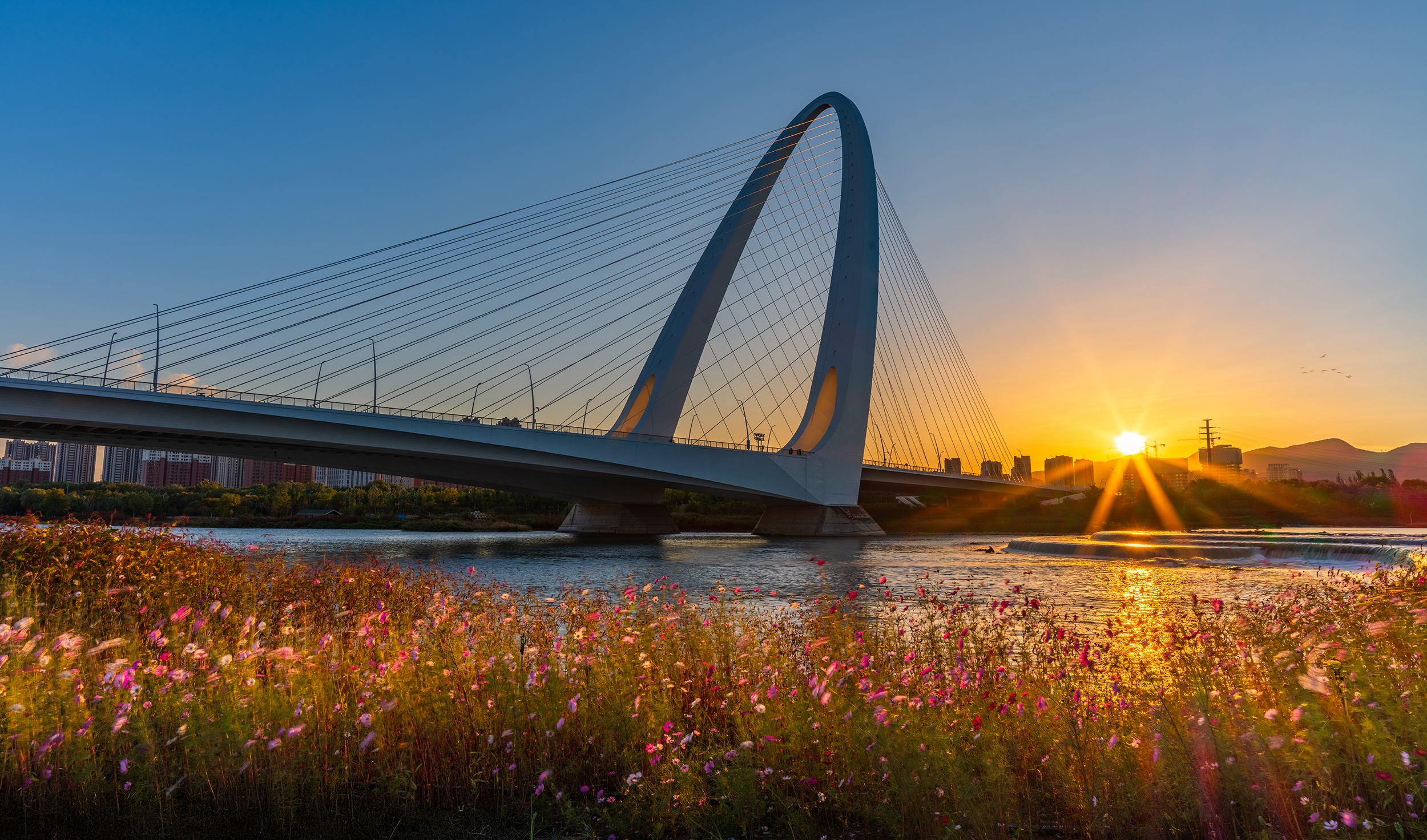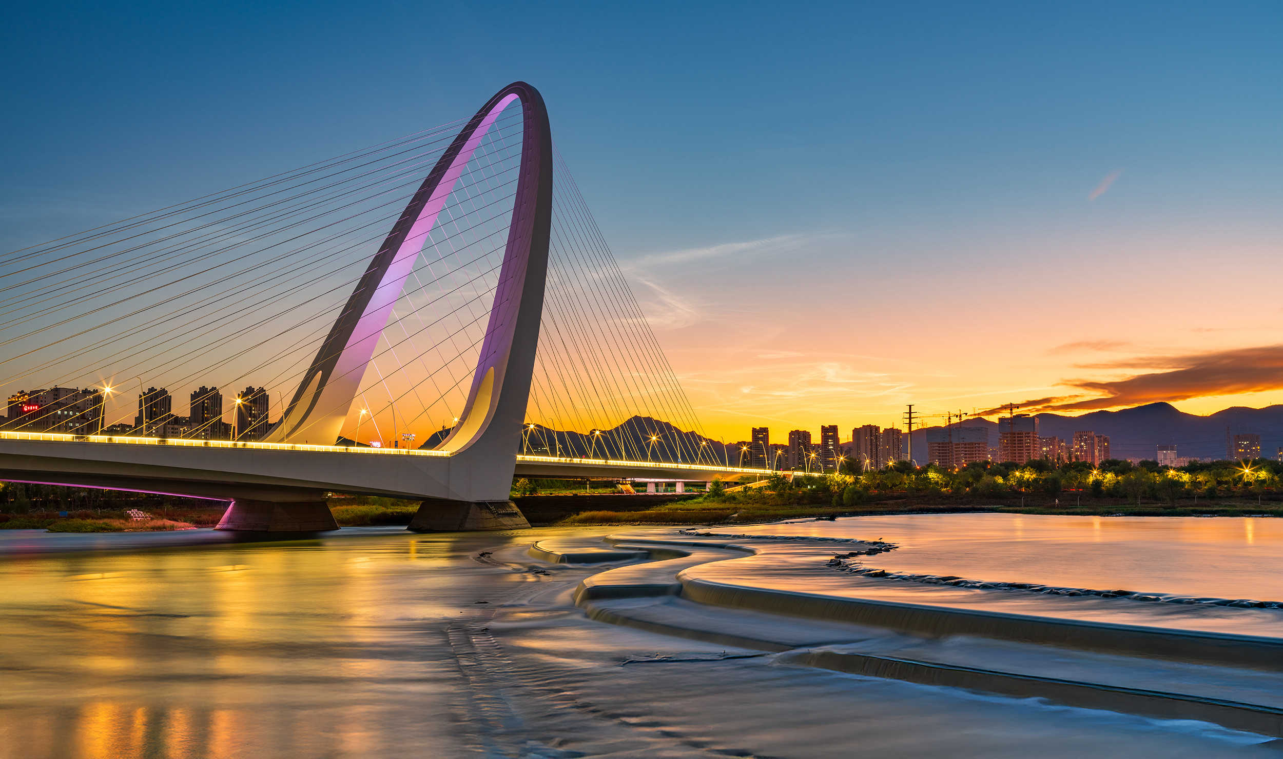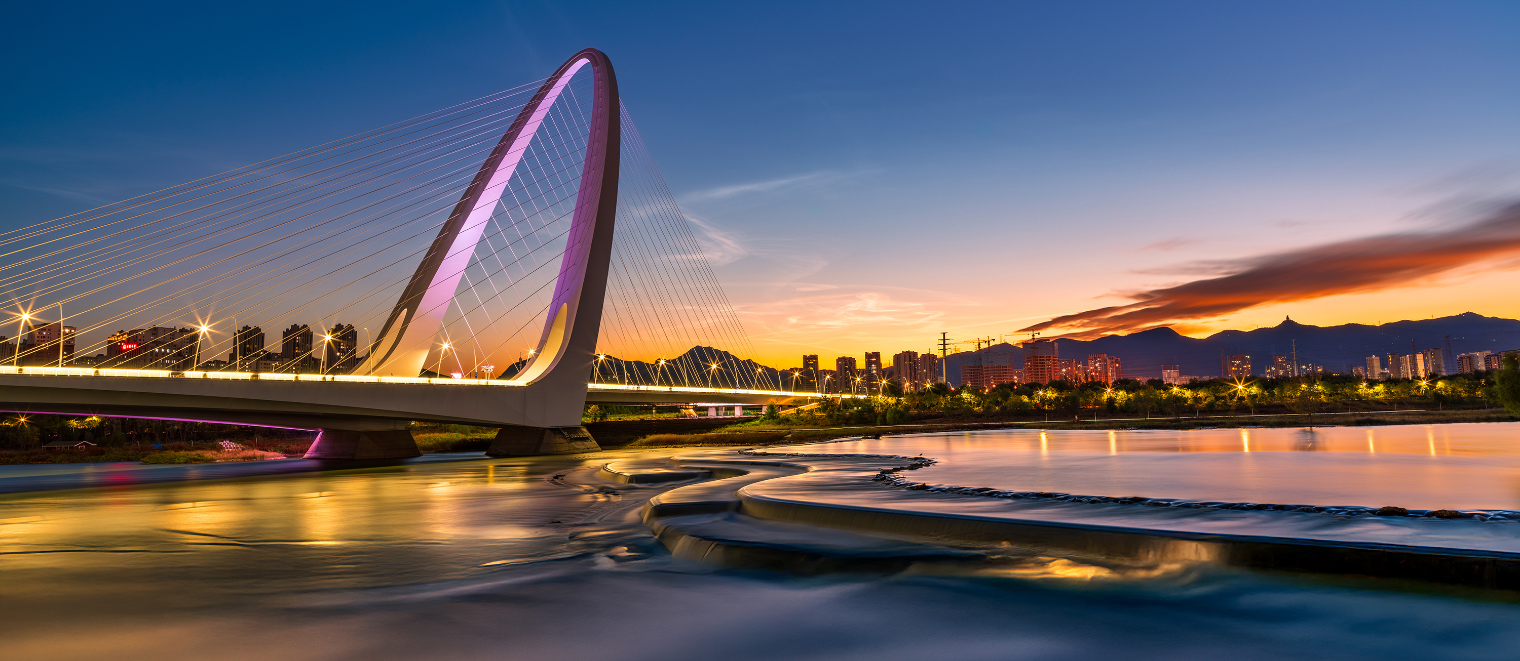 北京傍晚终于放晴,来到家门口暮色中的新首钢大桥。飞虹倒映在粼粼水面,天空从橙红渐染靛蓝,一首都市黄昏的诗意,工业美学与自然韵律的相拥。哈苏X2DII,20-35镜头。