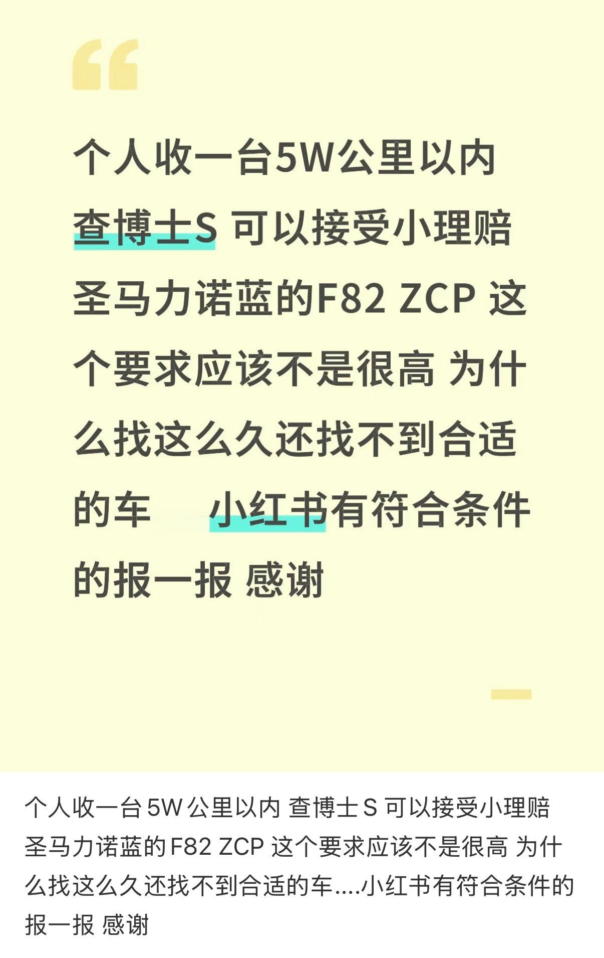 个人收一台F82 ZCP 具体要求如图 动过底盘件的一律不要 有动过动力 刷过程序的也不要 麻烦有车的报一报 只要车况符合随时可定
