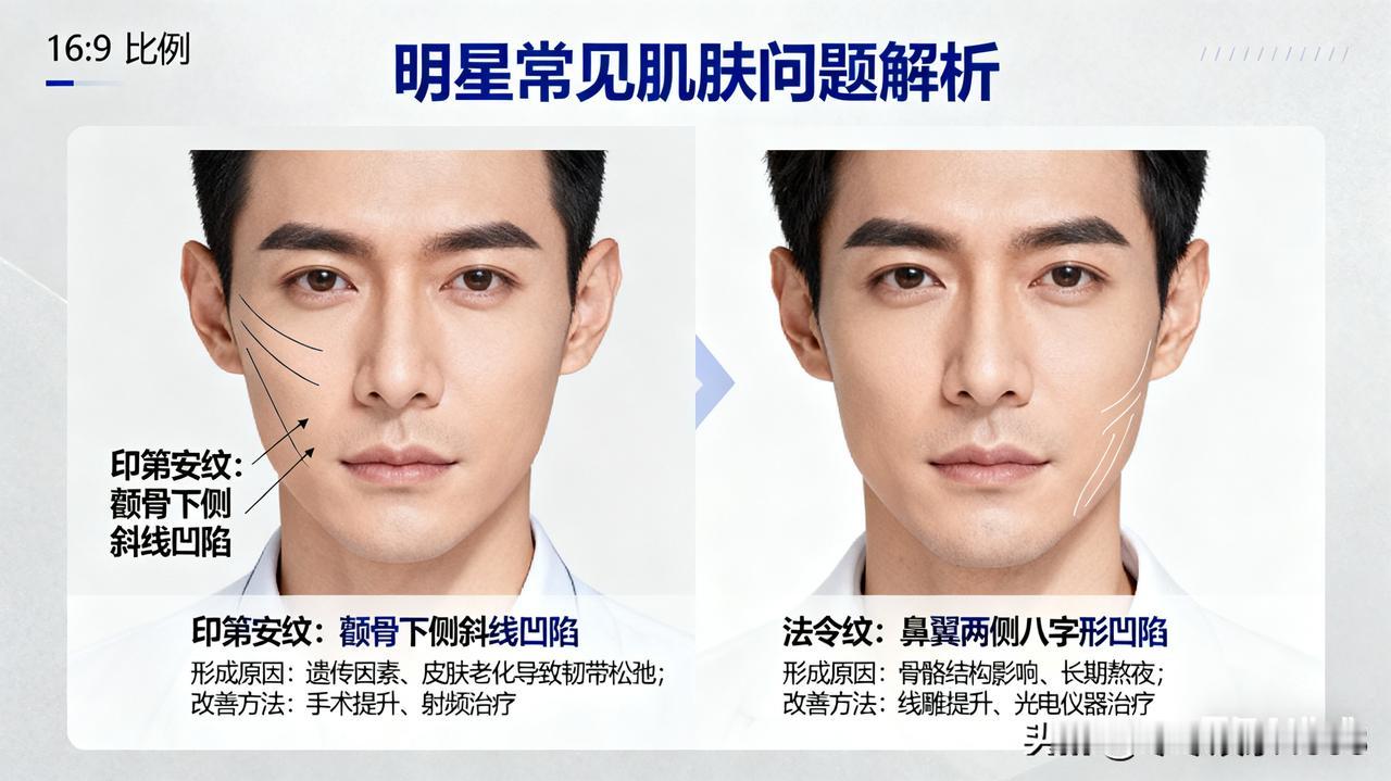 明星看似光鲜亮丽,实则也有肌肤困扰!就拿黄奕来说,有观点认为她如今的肌肤状况是长期打水光针透支肌肤寿命导致的。其实,很多明星都难以摆脱印第安纹和法令纹带来的显老问题。 印第安纹在颧骨下侧,呈斜线形态,可能是颧皮韧带过度发达、脸部脂肪厚或皮肤老化松弛造成的。改善方法有注射肉毒素、吸脂和手术除皱,但不建议注射填充。 法令纹是鼻翼两侧延伸向下的八字形纹路,分天然、动态和静态法令纹。天然法令纹与骨骼发育有关,可注射填充;动态法令纹因表情肌运动形成,能注射肉毒素并注意表情管理;静态法令纹源于皮肤衰老,可通过线雕、拉皮或射频治疗。看来,明星也不是完美无瑕,咱们日常还是要健康生活、科学护肤呀。