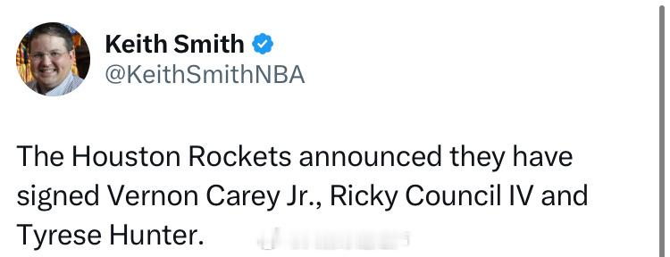 休斯顿火箭队宣布他们已经签下了弗农·凯里 、里基·康瑟尔四世和泰瑞斯·亨特。