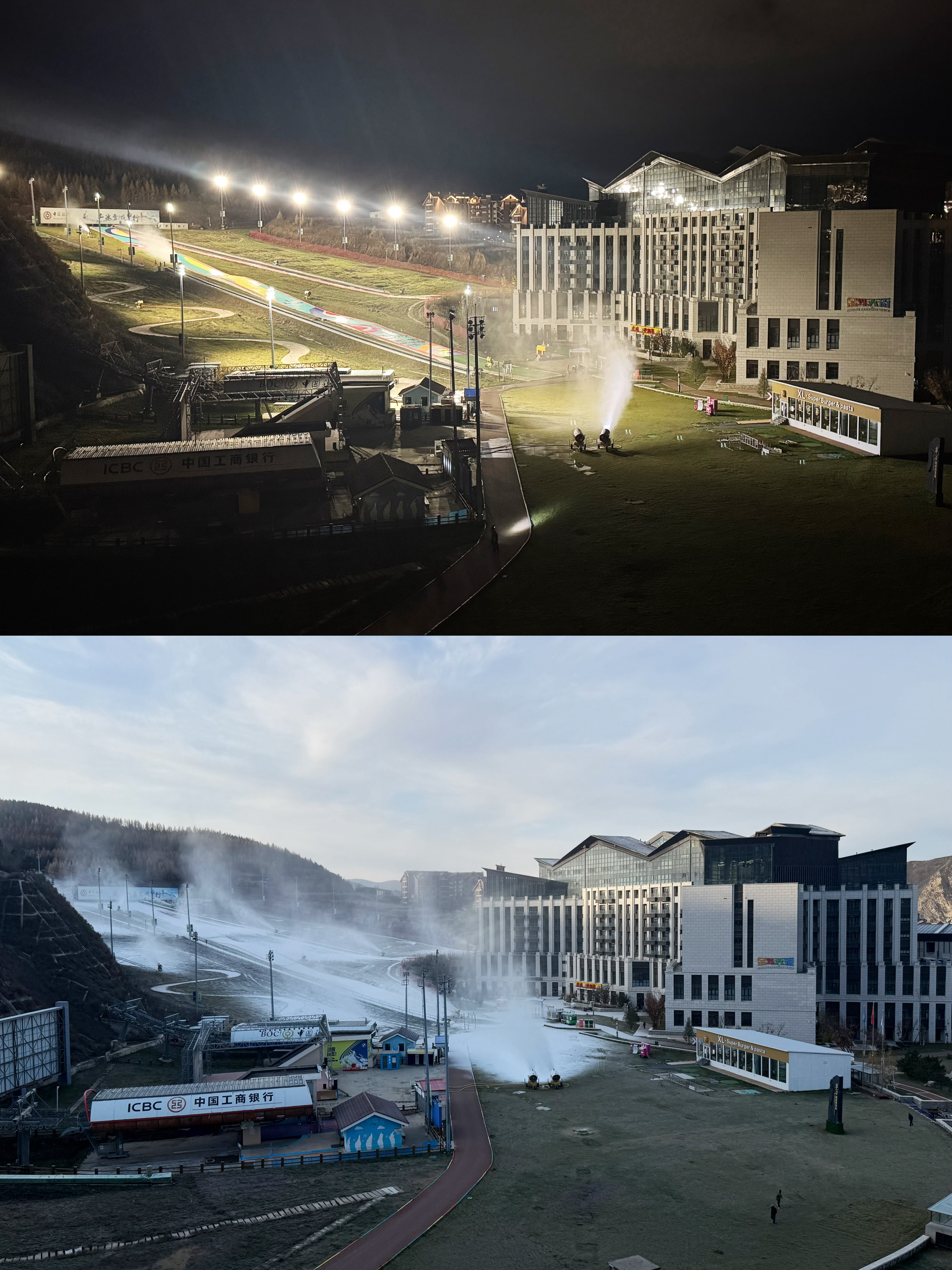 崇礼雪场开始忙活了,昨晚开始造雪,今早就出效果,气温也低到-7度,明天更冷-10