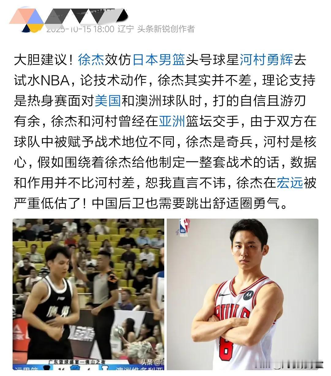 河村勇辉被公牛裁掉一点也不意外,令我意外的是竟然还刷到某些自媒体在吹嘘日本后卫河村勇辉,他甚至建议广东队的后卫去效仿河村勇辉去冲击NBA,这完全是扯远了,当然他这也许是想通过吹捧日本后卫的方式来暗踩和贬低中国后卫,NBA最不缺的就是能力超强的后卫球员,尽管河村速度快,有超强的三分投射能力,能投能突,但是像河村这样的小个子球员都很难在NBA站稳脚跟,何况爆发力比河村弱的徐杰