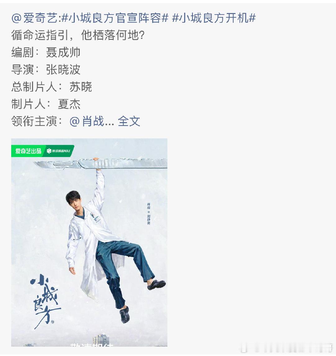 小城良方开机官宣,期待实力派演员肖战带来的全新现实主义大作[憧憬][憧憬]