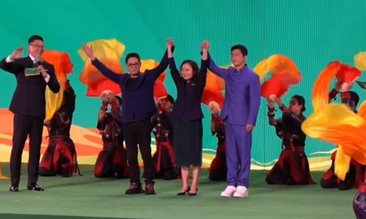 国际武术联合会秘书长张玉萍为吴京颁发了“国际武术联合会和中国武术协会武术形象大使”聘书。