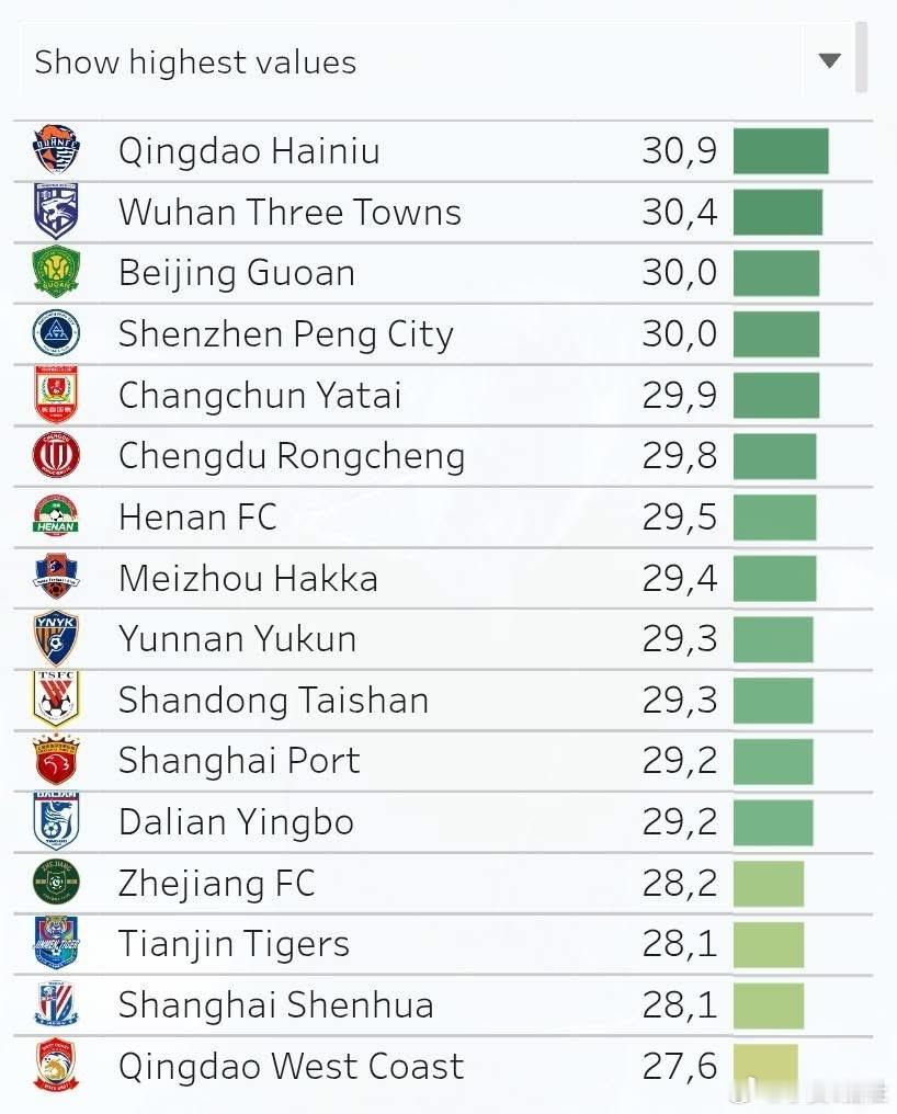 📊中超各俱乐部的年龄排名(完整排名见图3)