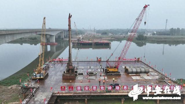 作为项目的重点控制性工程,杭埠河特大桥跨越宽阔的杭埠河航道及两岸堤防,桥面全宽达37.5米,主桥设计为(85+150+85)米矮塔斜拉桥,引桥部分跨越杭埠河东岸大堤则采用了(34+67+34)米连续梁桥。主墩下部采用群桩基础,48根直径达2.0米的钻孔灌注桩深嵌河道,施工环境特殊、技术复杂、施工组织难度较大。桩基施工采用了效率高、成孔质量好的旋挖钻工艺。为确保施工安全、质量及减少对杭埠河河道的影响,项目团队周密策划,优化调整钢板桩支护以及深基坑专项施工方案,组织专家进行严格论证,确保方案科学可靠。同时,在桩基施工前,对地质情况进行钻探并报勘察单位进行复核,做到心中有数,精准施工。