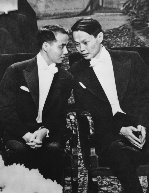 杨振宁(右)和李政道在诺贝尔颁奖礼上