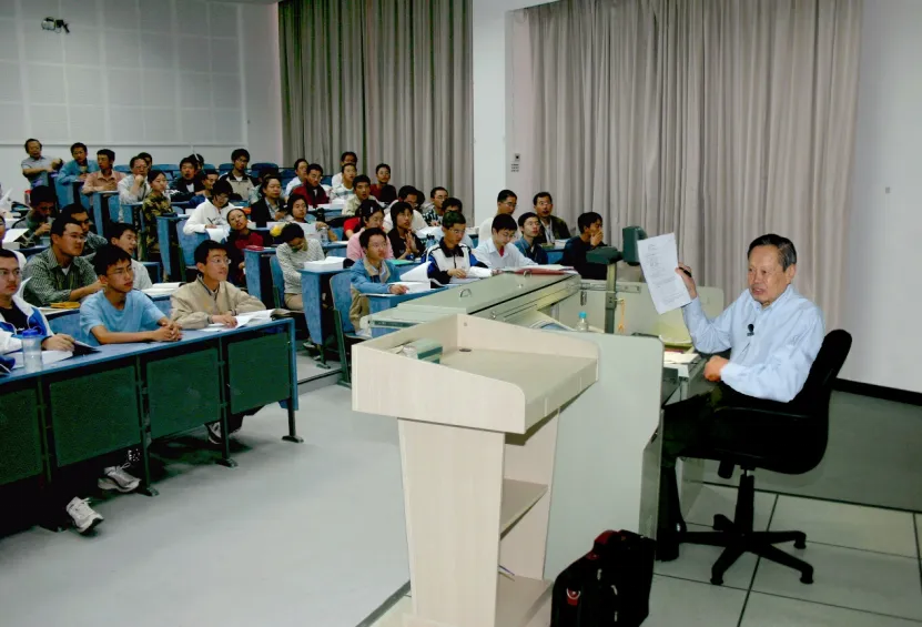 2004年秋,杨振宁与清华大学物理系大一新生在课间交流