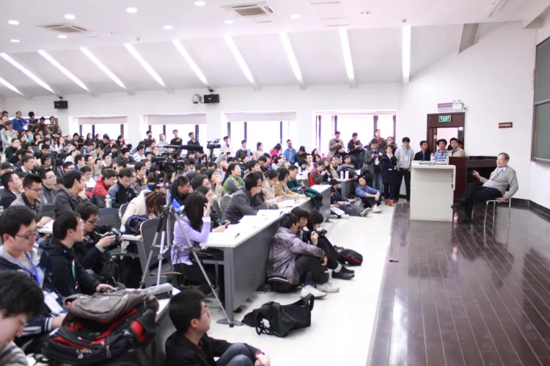 2012年4月5日,杨振宁先生做客清华大学博士生“学术人生”讲坛,讲述他的学习与研究经历。现场座无虚席,很多学生站着听完报告