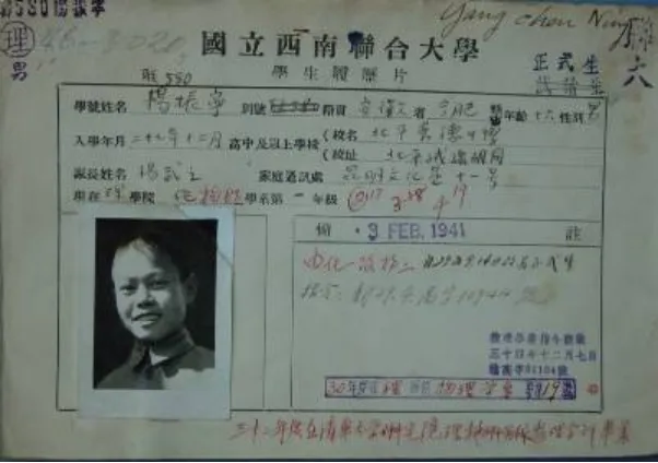 1937年,七七事变爆发,杨振宁只能离开了清华园。1938年,杨振宁被西南联大录取。