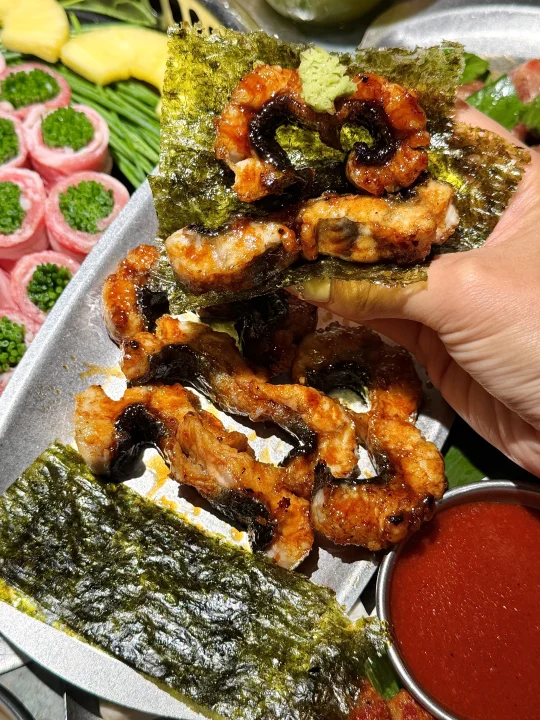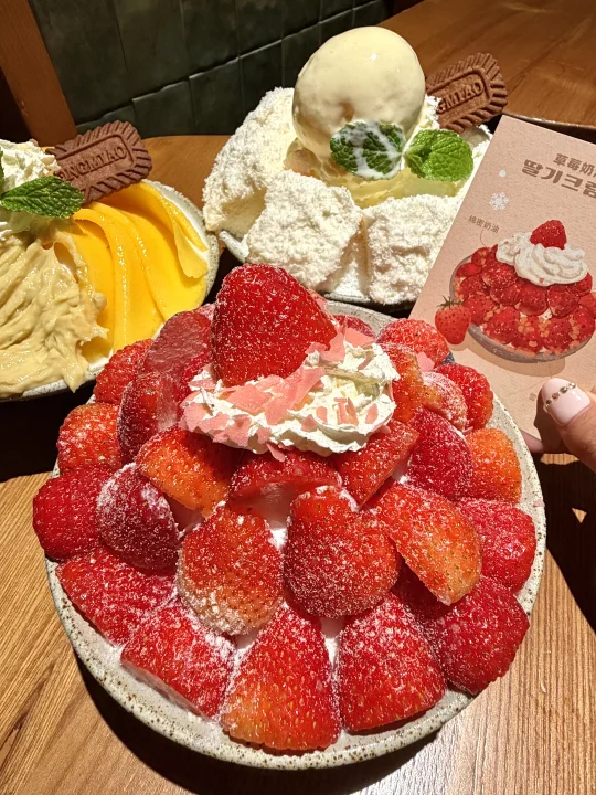 芥末肠、沙葱肥牛卷、烤鳗鱼、水芹五花肉都很对味儿🥹🥹还有草莓奶油雪冰、椰子雪冰、芒果榴莲雪冰、济州石头老爷爷……好多漂亮甜品都一吃一个不吱声~