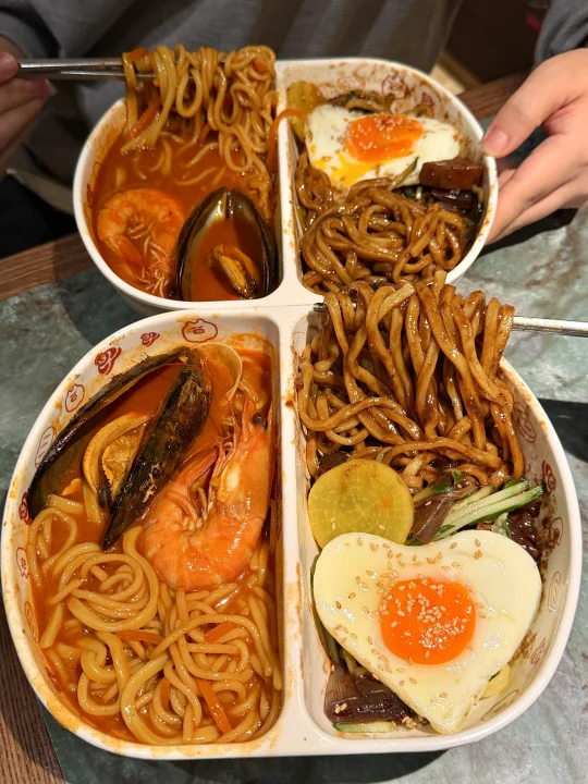 跟着青岛网友推荐来的~特地错开饭点来吃,进门就听见厨房韩国欧巴说话!就知道有多正宗了!他家韩式真的双拼面一口惊艳!满满炸酱面搭配海鲜面好好吃呀!