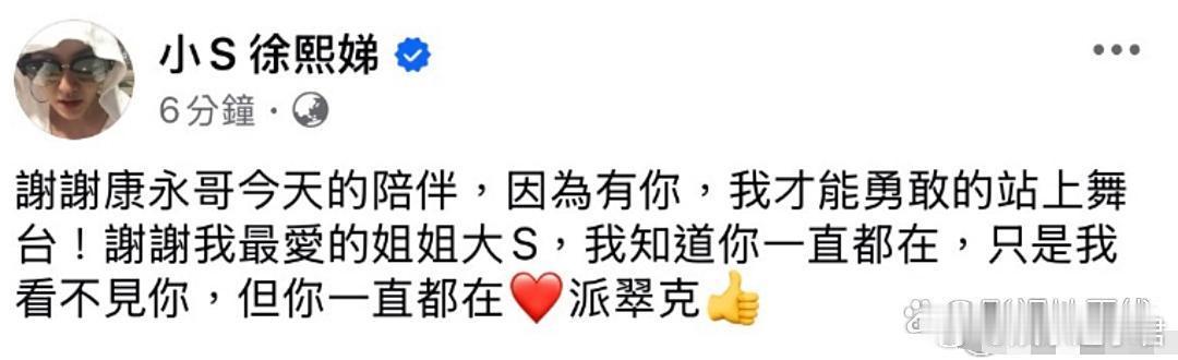小S受访透露自己下台后崩溃大哭,S妈给她发语音说她填补了她心中的一个洞。具俊晔也有恭喜小S获奖,她透露具俊晔每天会去墓园陪大S吃饭,还会每天画大S的画像,满屋子都是大S。