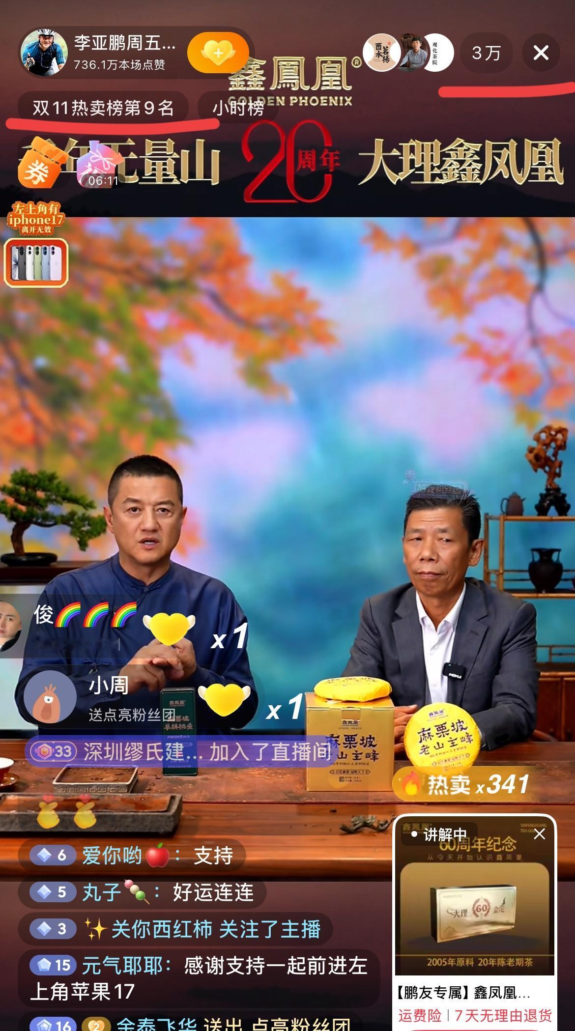 著名演员李亚鹏官宣离婚后,直播带货流量暴增!!以前每场的同时在线人数大概是几千人,现在突然增长到几万人,有好几倍的暴涨,目测销售量也会大涨,以前每场观看总人数大致是18万左右,官宣之后当天直播,观看总人数大涨到187万,人数暴涨十倍~ 数据显示,当天的销售额1800万,也是平时的好几倍~ 如果能维持这个流量,李亚鹏4.7亿的负债,三年左右也可以还完~ 直播带货还是很赚钱的,关键是要有稳定的流量,能够做成头部并能稳住!! 鹏哥现在的茶叶领域已经是头部主播,抖音一哥了,如果能扩大战果,矩阵发力,还是很有机会获得突破的,问题是,企业化运营又不是他的强项,这也是一个两难的问题!! 一个人难以做大,企业化运作难以把握,太难了!