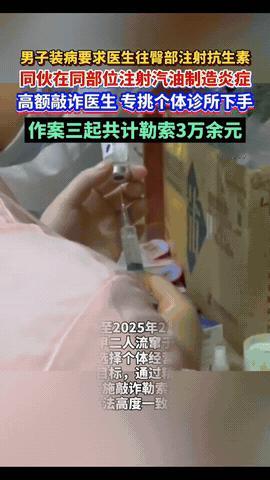 “太可恶了!”近日,湖北荆州,一男子假装生病到私人诊所里打针,没想到,却趁着医生不注意,往自己的屁股上注射 汽油!结果被打针的部位严重红肿后,男子又讹诈医生索要高额赔偿,网友:有这头脑偏要去当骗子。 他们专挑小诊所下手,先假装看病打针,转头就偷偷注射汽油造溃烂假象,讹了三万多块。 最可怕的不是自残骗钱,是这骗局藏着的“专业算计”。 他们摸准小诊所怕担“医疗事故”名声、没精力扯皮,还研究透了汽油能造成坏死假象,连索赔时机都掐得精准。 这种把“坏心思”玩得这么“专业”的,比单纯骗钱更让人膈应——有这琢磨歪路的脑子,干点正经事不好吗? 小诊所本来经营就不容易,哪经得住这种恶意敲诈。 还好法律判得公正,没让他们得逞。 其实医生遇到这种事别慌,留好证据赶紧报警才是正理。