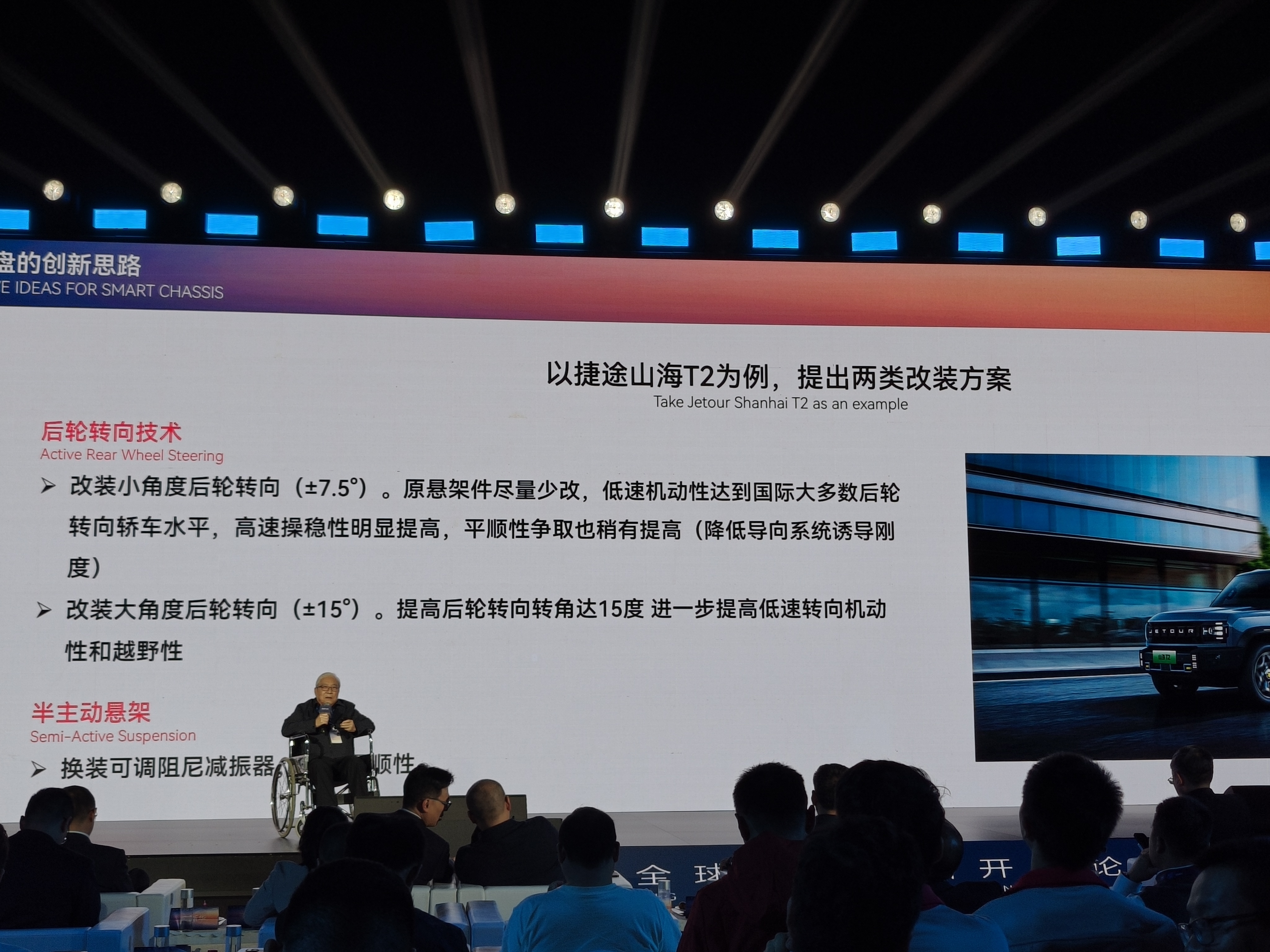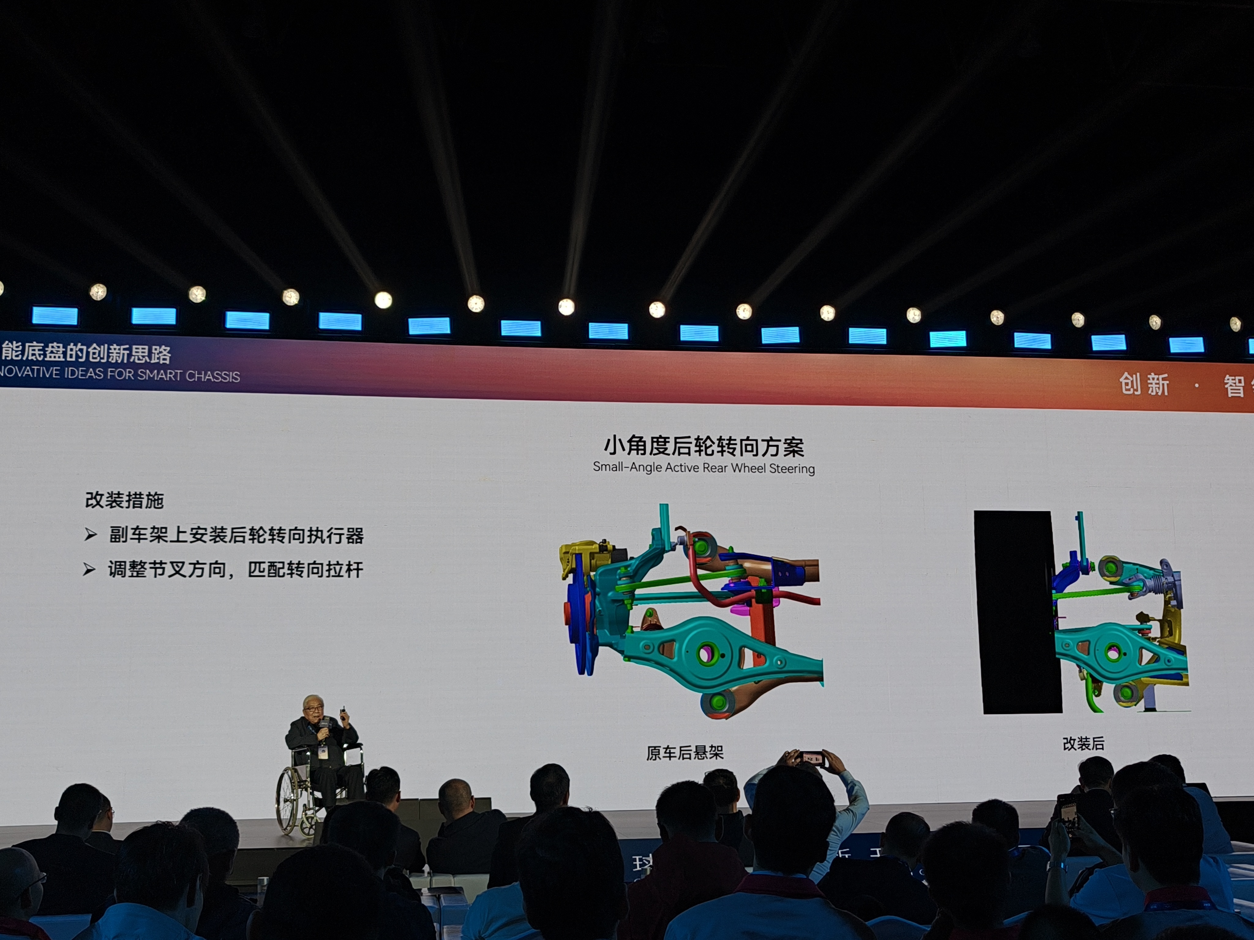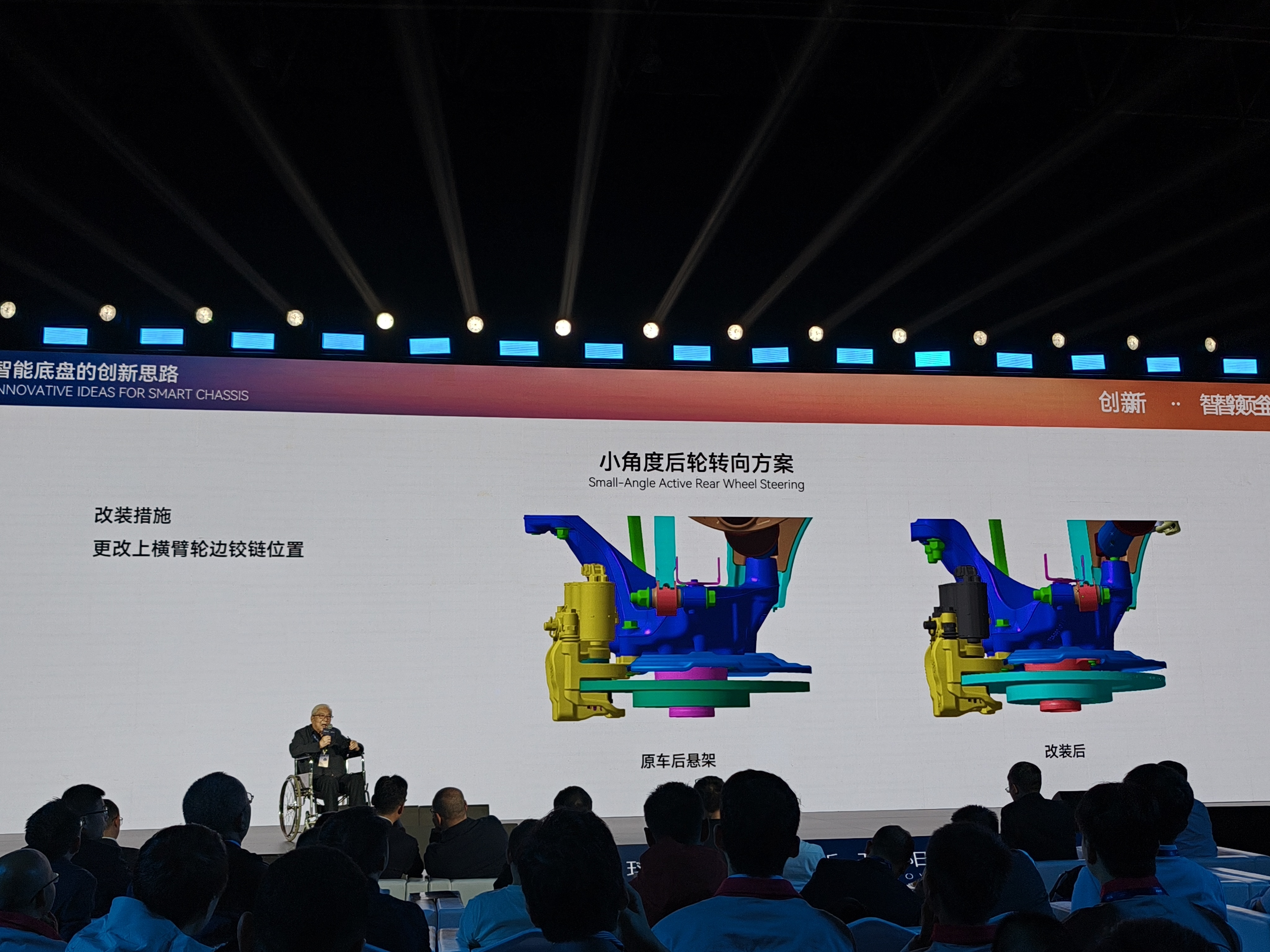 本次会议讨论的话题是智能化,在会议上中国工程院院士、吉林大学教授郭孔辉老先生,为智能底盘提供的创新思路。