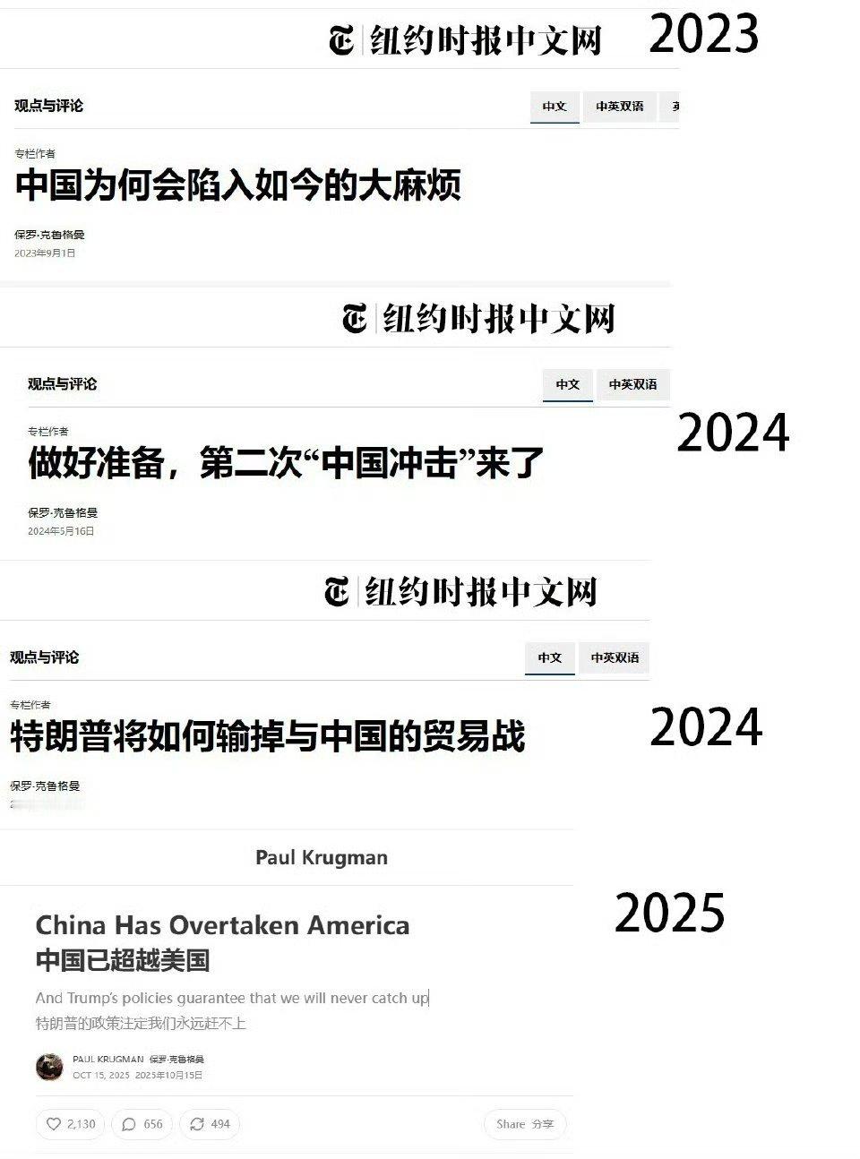 纽约时报的2012-2025,从中国崩盘到超越美国热点观点 [二哈]