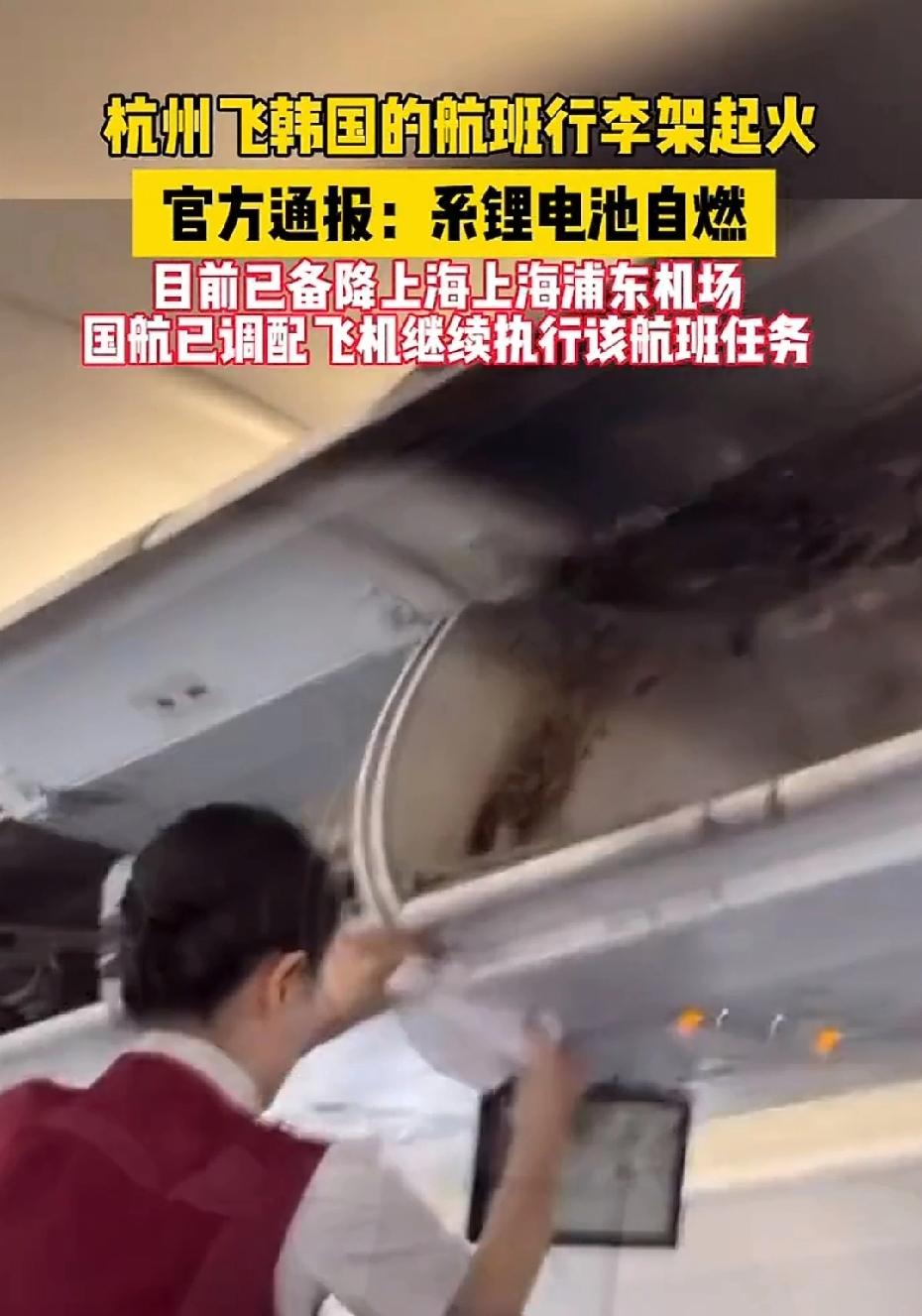 快讯:杭州飞韩国航班行李架“发火”,锂电池成“始作俑者” 10月18日,杭州飞往韩国的航班突发状况。行李架内锂电池突然自燃,火光惊现机舱。 火势未造成人员伤亡,航班紧急备降上海浦东机场。 这颗锂电池堪称“空中不定时小炸弹”,凭空闹脾气点燃行李架,幸好处置及时,化险为夷。
