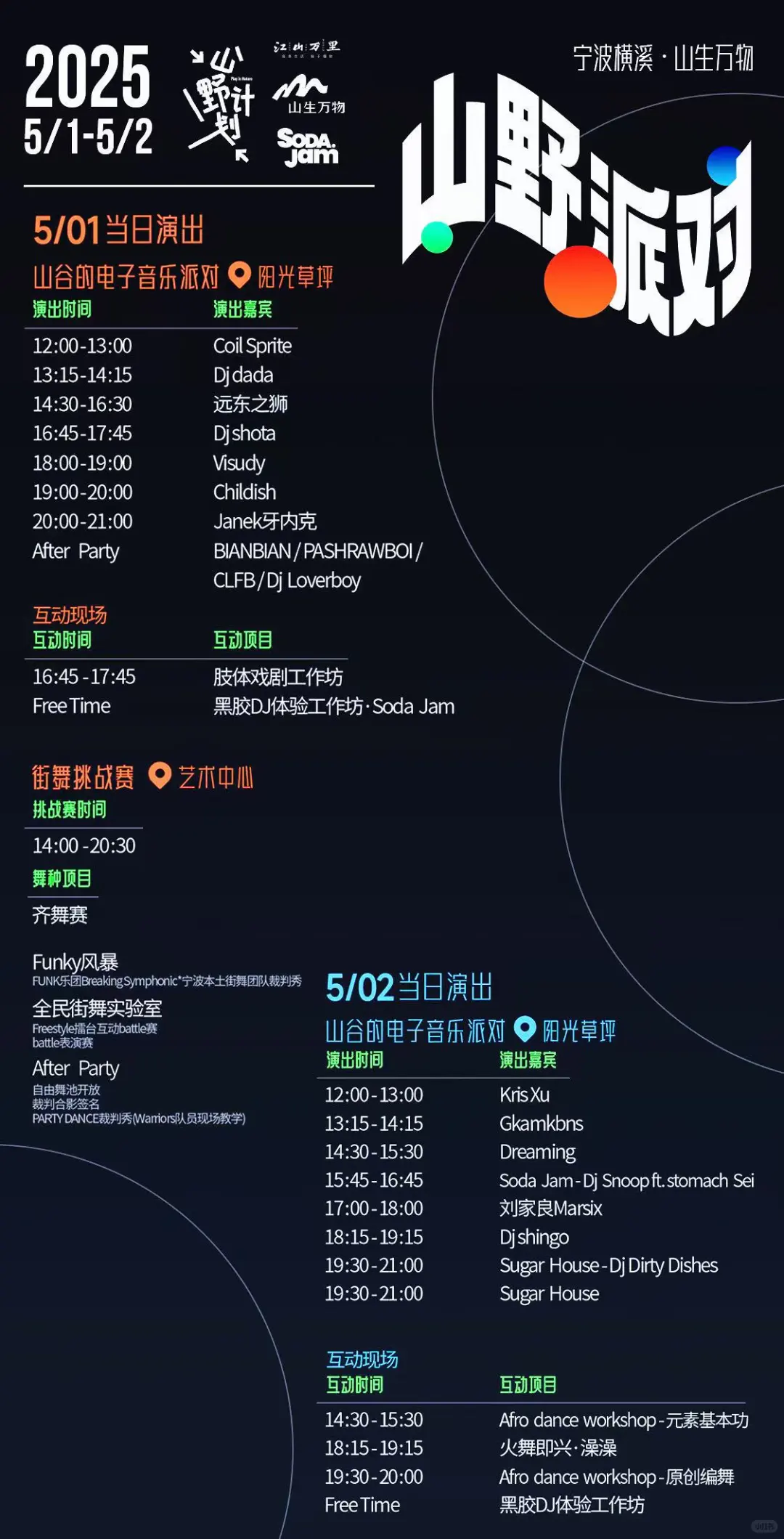 这阵容狠狠期待住了 五一就来这儿,带上家人朋友🧑🤝🧑来山野狂嗨👋 小伙伴们,谁能拒绝这神仙地儿 据说这次也是超豪华阵容 ✔️Coil Sprite ✔️DJ dada ✔️远东之狮 ✔️DJ shota….. 家人们,快来说说最想在现场看到谁的表演! ⏰:5.1-5.2 📍:宁波山生万物 🎫:GZH 山生万物 Life In Hills 客服: