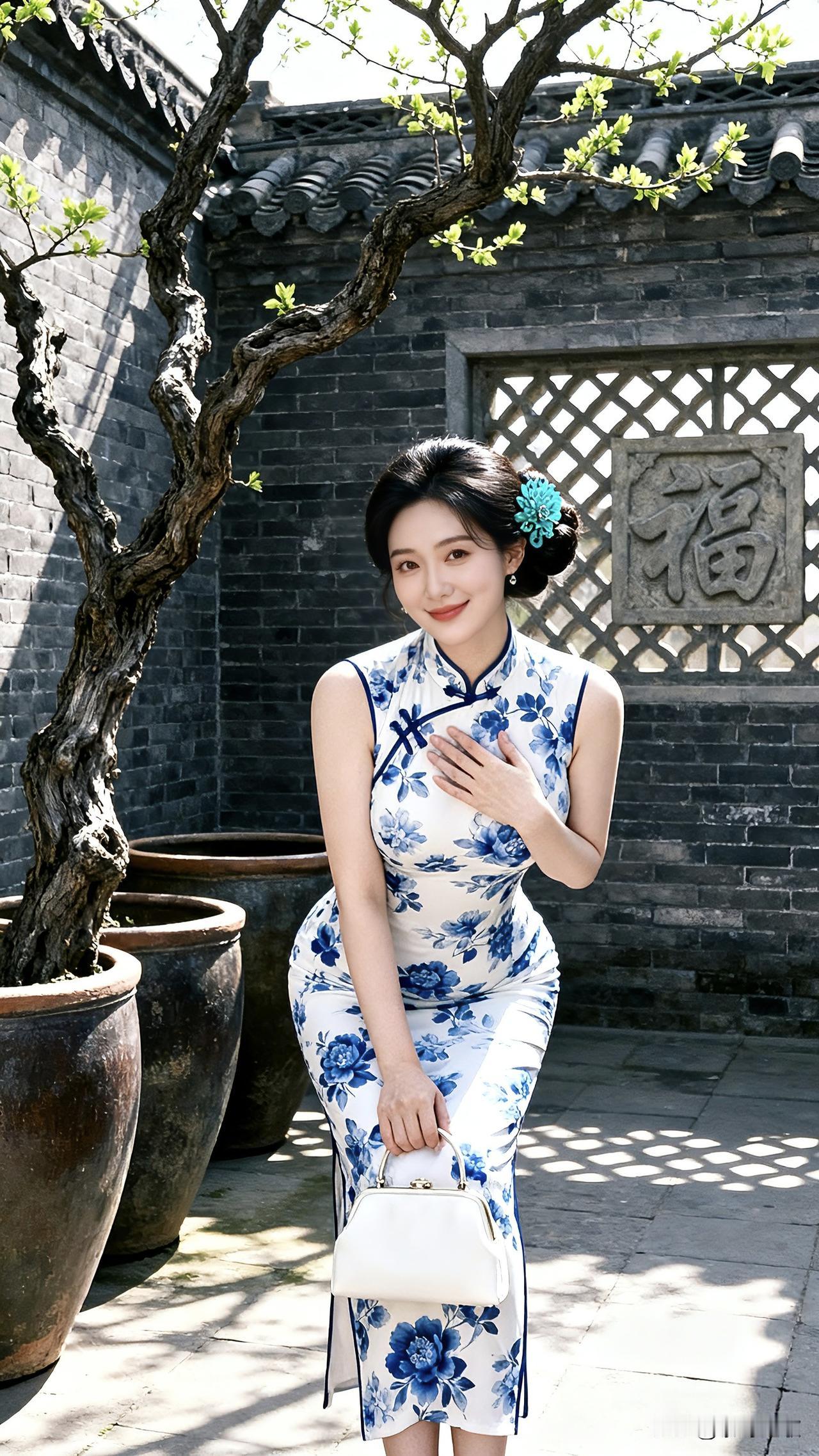 穿青花瓷旗袍逛中式庭院,我发现了普通人拍出“国风大片”的3个实操技巧 多数人以为拍国风照得靠专业团队,其实我在江南老宅随手拍的这组旗袍照,点赞量破万的关键,全是能直接复制的小细节。 一、选景:抓住“新旧碰撞”的视觉锚点 别只盯着网红园林人挤人,像图里这种灰砖墙+“福”字砖雕的老宅院,或是城市里的文庙、祠堂角落,自带历史感滤镜。 实操细节: - 找“有故事”的元素:比如镂空窗棂的光影、陶缸里刚发芽的树枝,当背景能给画面“定调”; - 避开杂乱色彩:穿旗袍时,背景尽量选黑、灰、木色这类低饱和色调,让衣服的蓝白花纹成为视觉中心。 二、穿搭:用“1个亮点+1个呼应”提升精致感 很多人穿旗袍怕老气,其实选对配饰就能很出挑: - 亮点:像图里的蓝绿色发饰,和旗袍的蓝色花朵呼应,瞬间把“普通盘发”变成“国风造型”; - 呼应:白色手提包和旗袍的白色底色相衬,避免穿搭色彩太杂,普通人也能穿出协调感。 懒人公式:衣服主色+1个同色系小配饰+1个基础色单品(包/鞋),怎么搭都不翻车。 三、姿势:3个“日常不做作”的动作,新手直接抄 不用刻意摆拍,这几个动作自然又出片: - 侧身回眸:稍微转半身,肩膀放松,眼神温柔看镜头,既能展现旗袍曲线,又不会显得僵硬; - 手搭胸前:一只手轻放胸口,另一只手提包放在身侧,像散步时被抓拍的自然感; - 靠在石凳/门框:身体微微前倾,营造“不经意被拍到”的松弛感,适合不想露全脸的姐妹。 最后:普通人拍国风,“氛围”比“技术”更重要 不用纠结相机多贵,手机开自然光模式,选个有老建筑、绿植的地方,穿件带传统元素的衣服(不一定是旗袍,汉服小上衣、中式连衣裙都行),照着这些技巧试试,你也能拍出刷爆朋友圈的国风照~ 你觉得哪种国风穿搭最出片?评论区聊聊你的宝藏拍摄地~如何把旗袍穿出自己的气质 女生穿连衣裙如何能显的成熟 旗袍古韵写真 旗袍庭院照