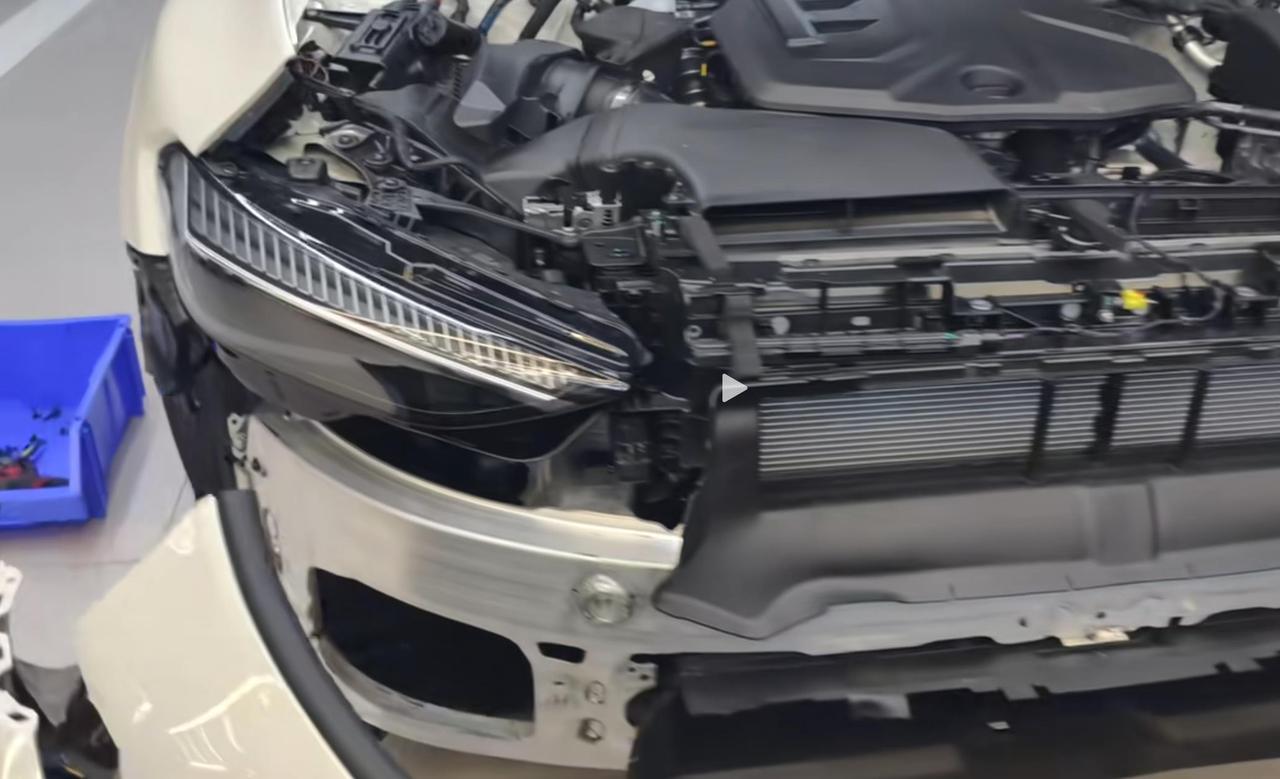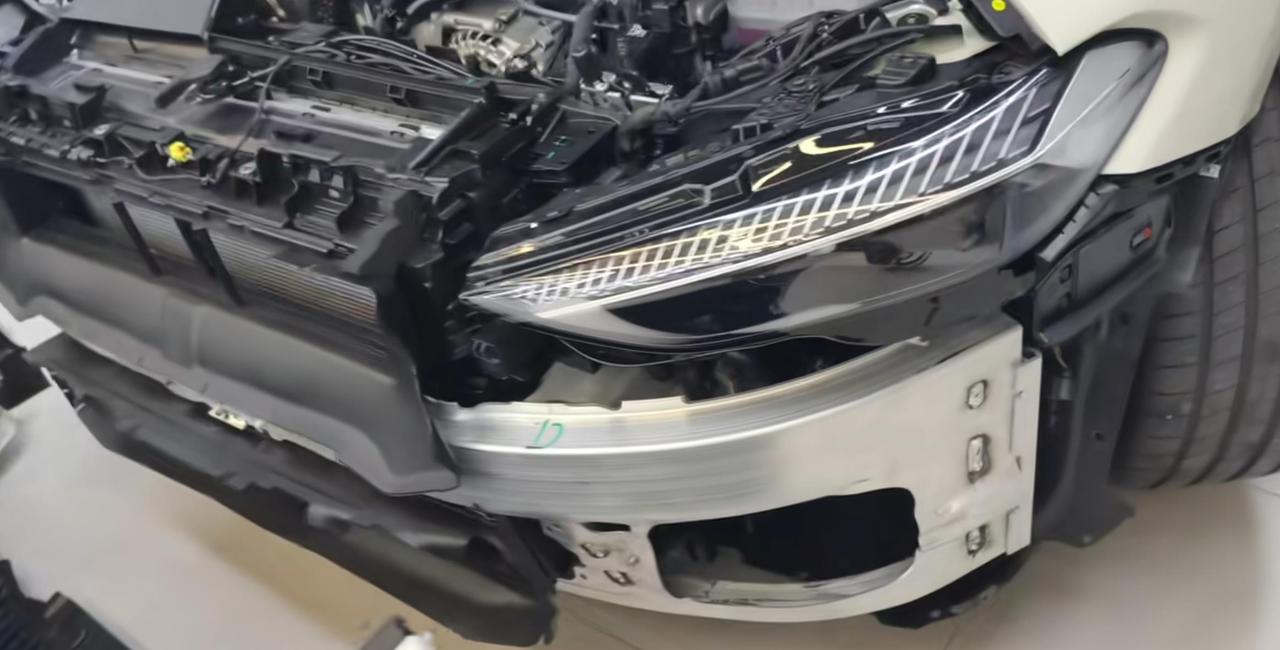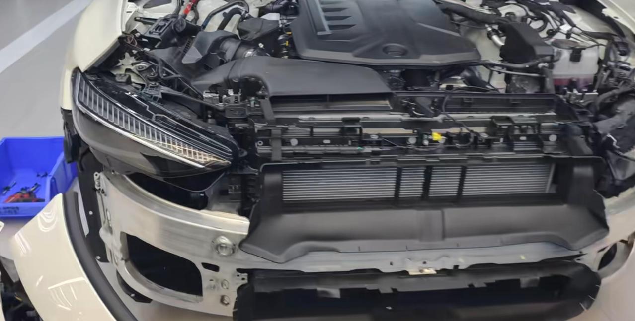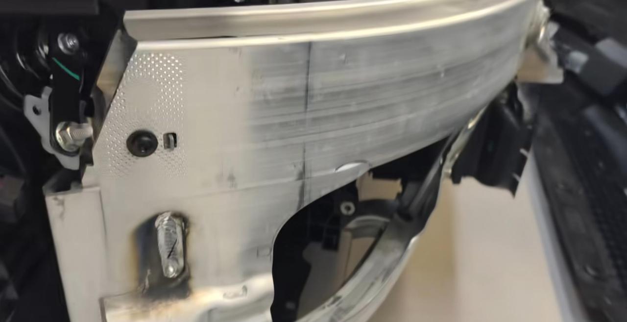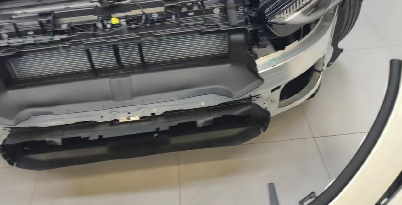 上汽奥迪A5L防撞梁展示,可以说是全包的防撞梁设计了,连前轮都包住了。【来自懂车