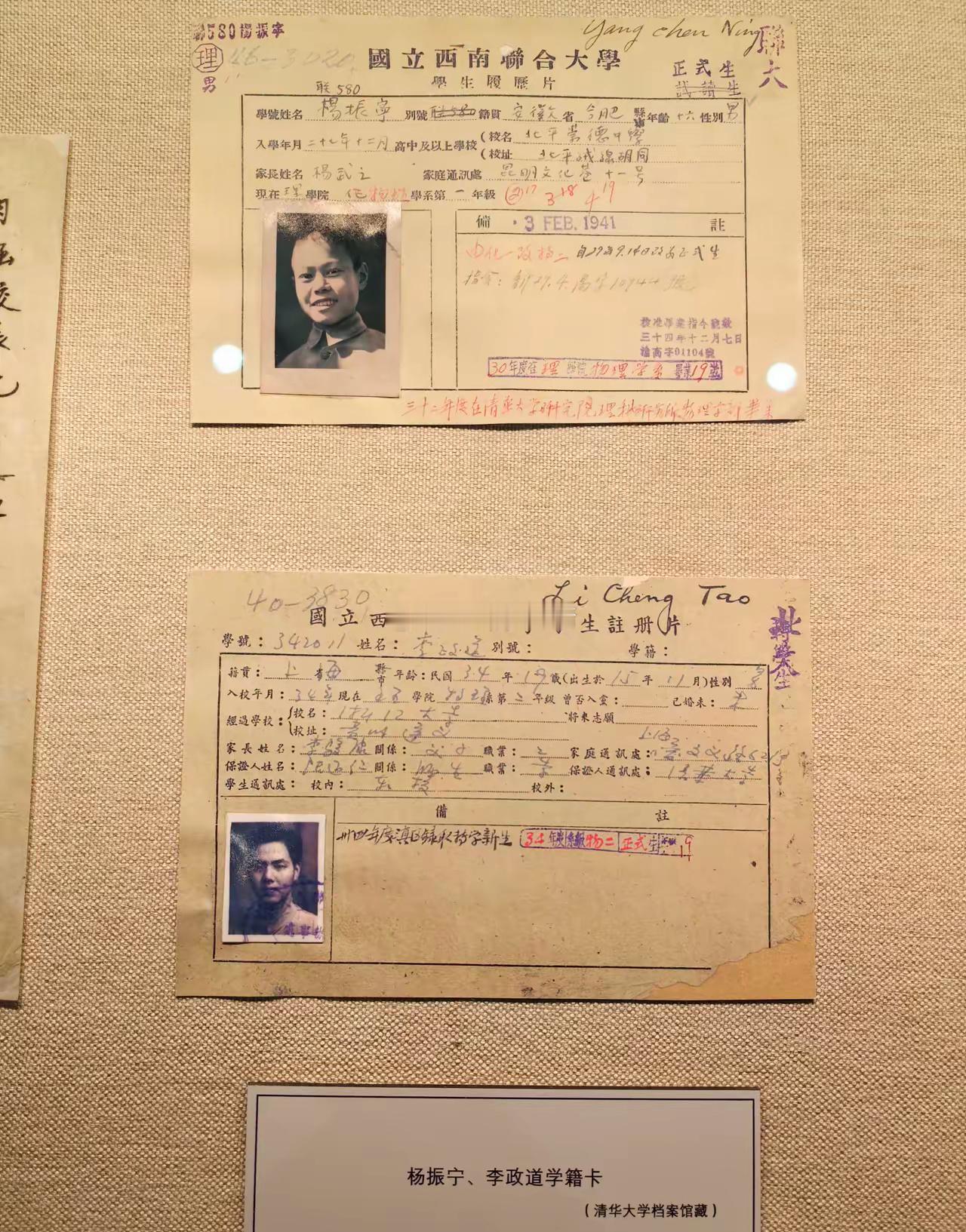 至今,清华大学档案馆仍留存着杨振宁、李政道在西南联大时期的学生履历。