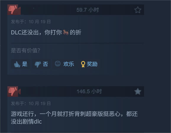 其中游戏在10月14号游戏发售刚刚一个月就打8折优惠引发了玩家不满,玩家评论道“知道你会打折,没想到这么快就打折”,而如今游戏的优化问题以及部分Boss设计问题都引发了玩家的不满。