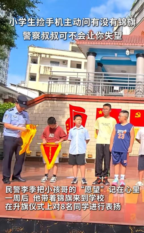 萌娃交手机在线“求锦旗”,民警安排表彰仪式暖心回应 云南红河8名小学生捡到手