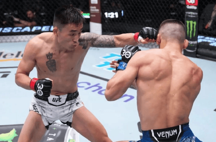 虎扑10月19日讯今早结束的UFC格斗之夜温哥华站主赛男子雏量级对决中,“蒙古杀手”傲日其楞仅用21秒便以一记后手重炮KO美国选手科迪-吉布森。