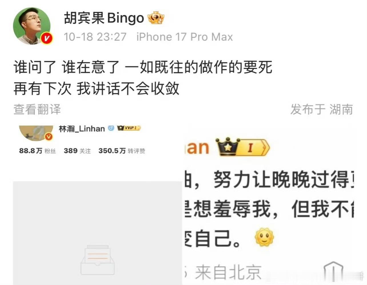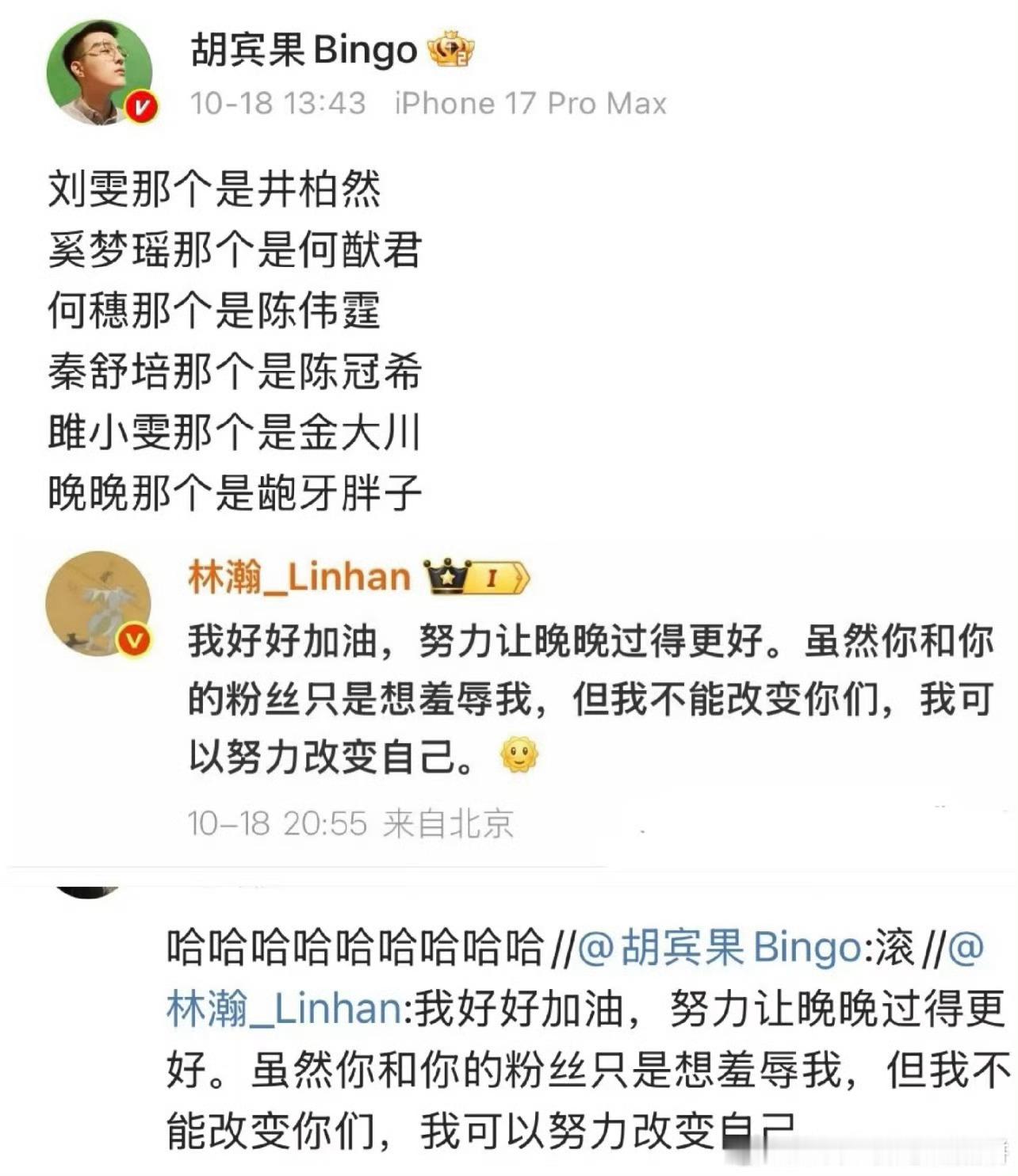 胡宾果昨天和晚晚老公林翰亲切问候,有点搞笑