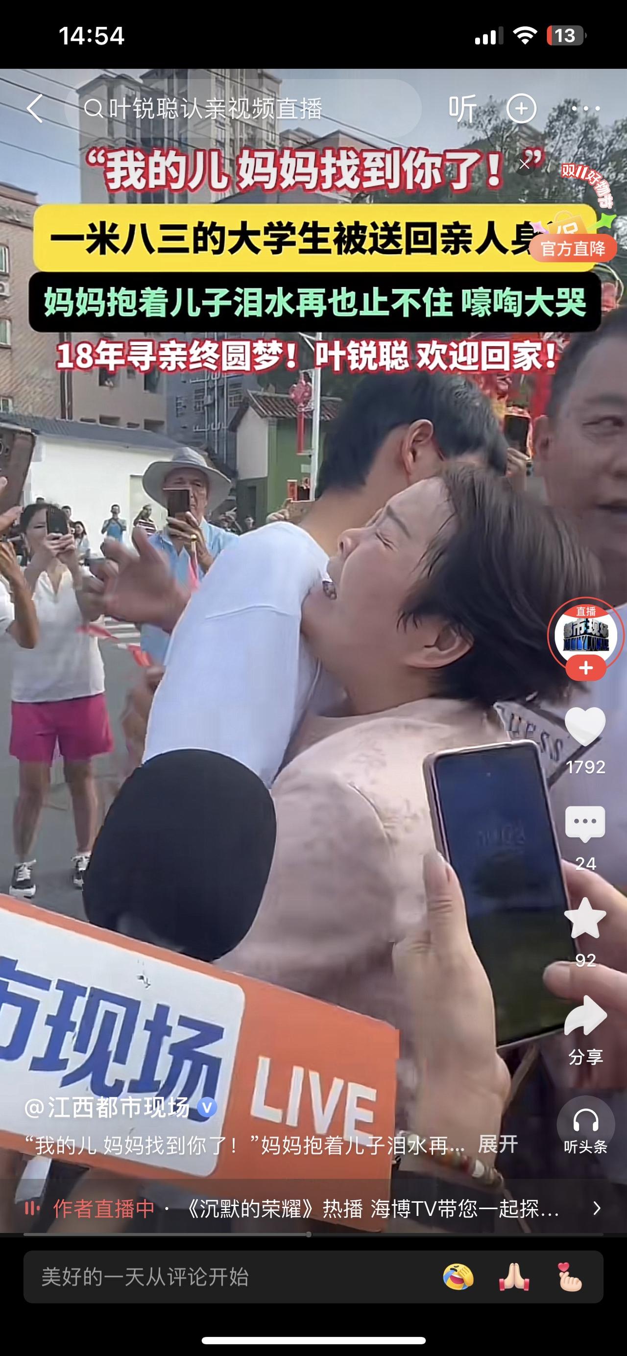 2007年11月12日下午5点,9个月大的叶锐聪,其父母曾悬赏20万,全国各地奔波寻子18年,“我得儿 妈妈找到你了!”妈妈抱着儿子泪水再也止不住,嚎啕大哭,18年寻亲终圆梦!叶锐聪,欢迎回家…… 这18年里,夫妻俩没睡过几个安稳觉。家里贴满了寻子启事,行李箱永远放在门口,一有线索就立刻动身,哪怕只是模糊的消息,也愿意跑遍大半个中国。 有人劝他们放弃,说孩子可能早就不在了,可妈妈总说“我儿子还活着,我得找”。悬赏金从5万加到20万,存折上的钱越来越少,寻子的脚步却没停过。 后来警方通过DNA比对,找到了叶锐聪。见面那天,妈妈特意穿了当年抱他时的外套,爸爸手里攥着泛黄的出生证明,手一直抖。 叶锐聪刚见到父母时有些陌生,可当妈妈拿出他婴儿时的小衣服,他眼里慢慢有了泪光。现在一家人终于团聚,饭桌上妈妈不停地给儿子夹菜,生怕他吃不饱。 邻居们都来道喜,有人看着夫妻俩这些年的苦,忍不住抹眼泪。大家都说,这18年的坚持没白费,好人终究能圆了心愿。