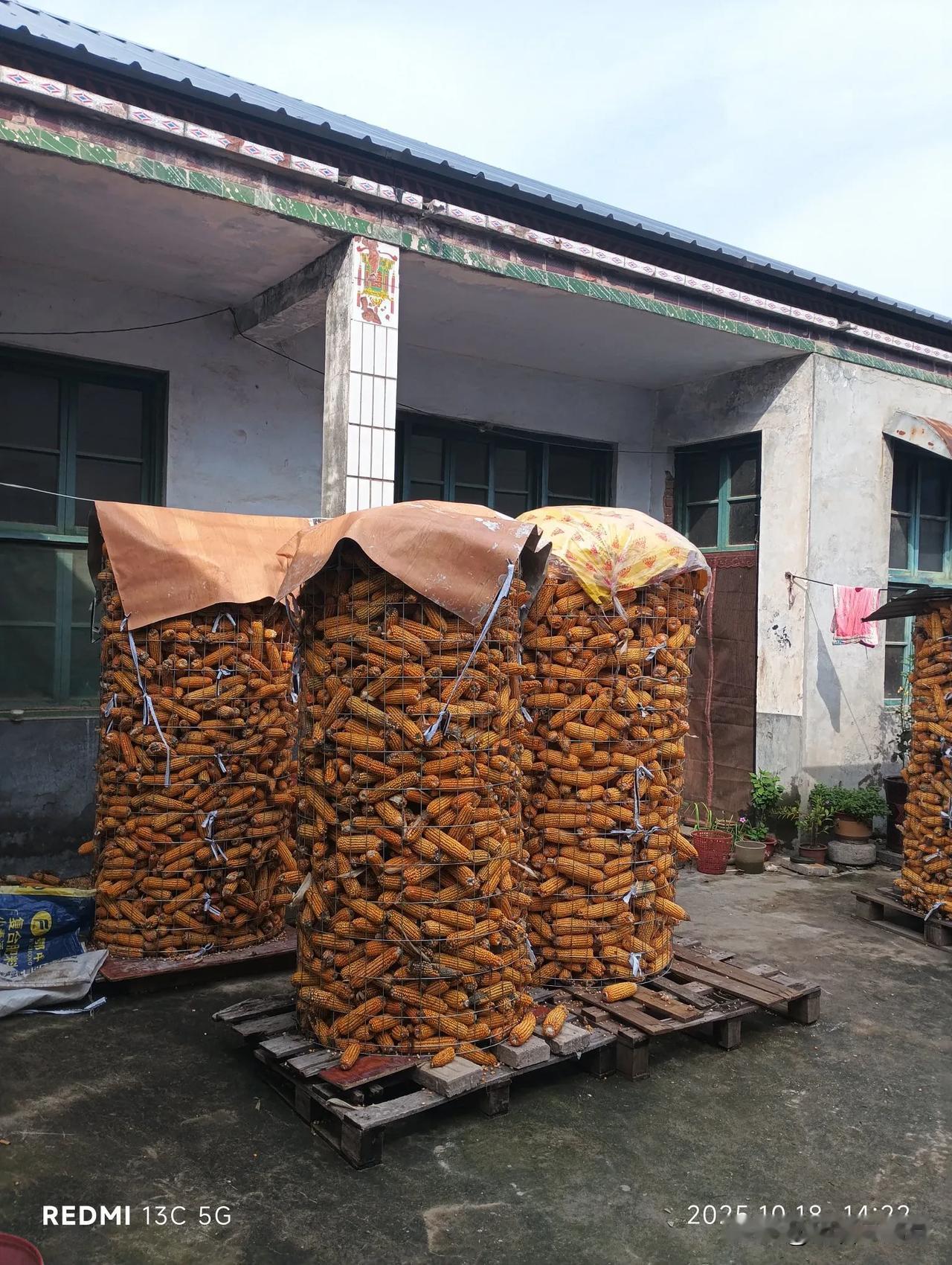 拼尽全力从泥窝里背出来的玉米棒子🌽因阴雨不断焐在家里多日,已有不少发霉生芽的,昨天难得晴天把发霉生芽的都挑了出来(约有一千斤),背到房顶上凉晒,其余的装进了铁笼里。天无绝人之路,长达一个月的阴雨天终于结束了! 今天是10月19日,村里仍有不少玉米还没掰,部分地里仍有积水。没掰的大多是种粮大户的,人工掰人力有限,用履带式收割机成本太高、玉米价格太低不愿意出售,掰了阴雨天也不好存放,所以就等着、盼晴天。即使不再下雨,能进车也得一星期之后了。现在已比正常年份晚掰了近一个月,还有四天就到了霜降(10月23日),今年将是几十年来掰棒子最晚的一年。不知到立冬(11月7日)能否种上麦子?