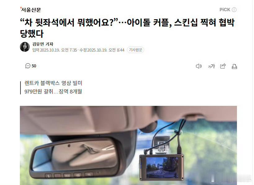 韩国有爱豆在车内亲密被行车记录仪拍下视频,随后遭车主勒索……不会是什么大热爱豆吧
