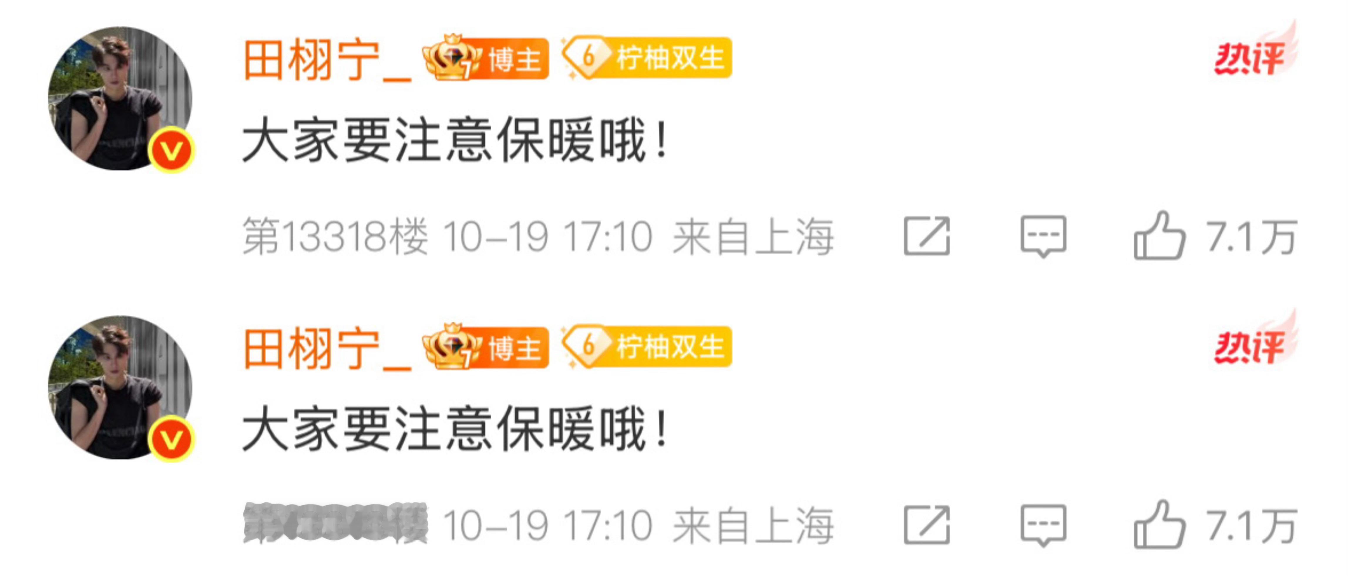 田栩宁今日份营业 晒侧身全身照 身材比例好突出😍提醒大家注意保暖好温柔[抱一抱]