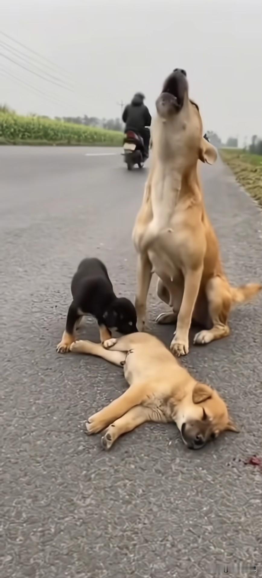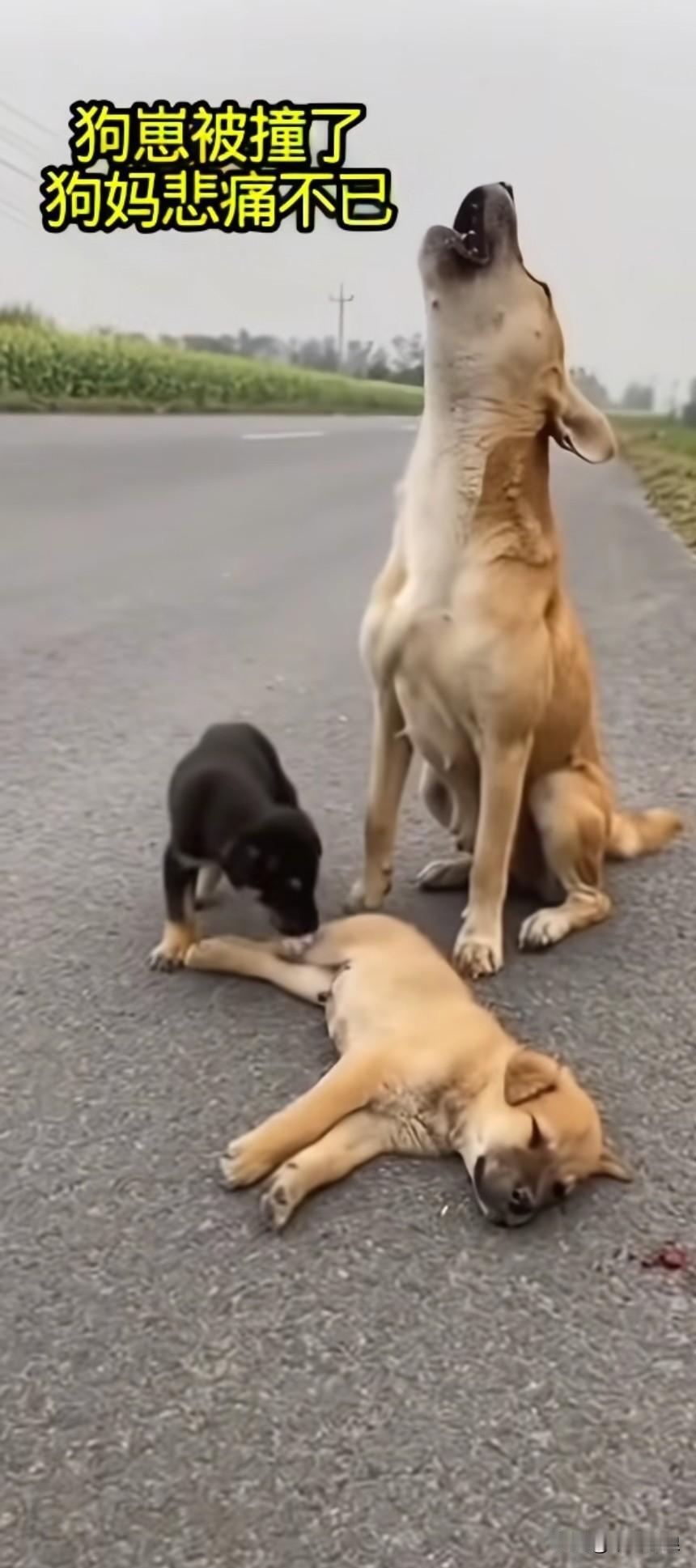 狗宝宝被车撞死,狗妈妈心疼不已,昂首望向天空长鸣,哭得撕心裂肺。路人听闻,皆为它感到难过。母爱不分物种