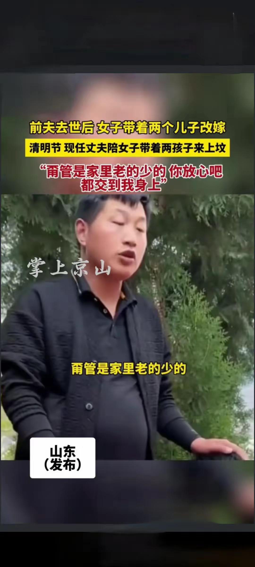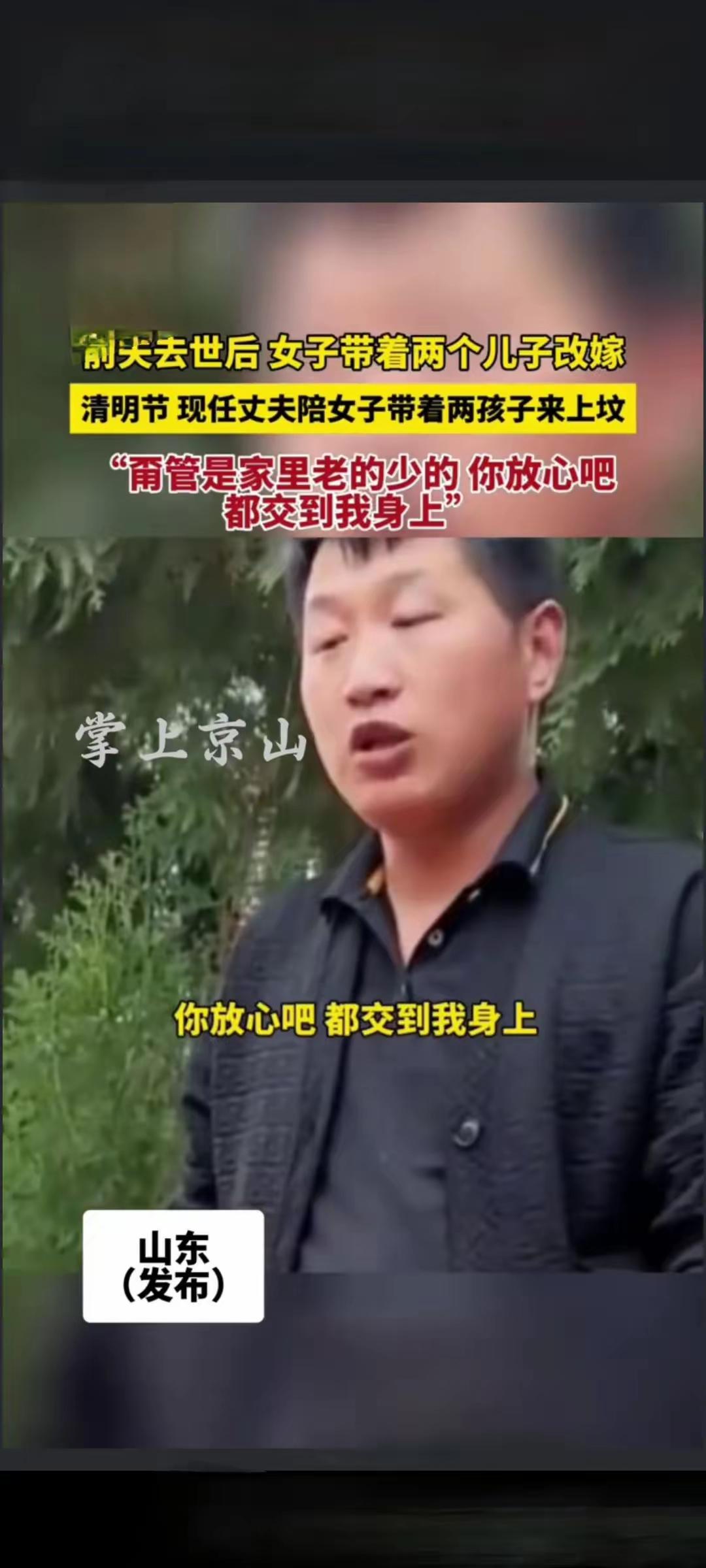 前夫去世后,女子带着两个儿子改嫁。清明节,现任丈夫陪女子带着俩孩子来上坟,现任丈