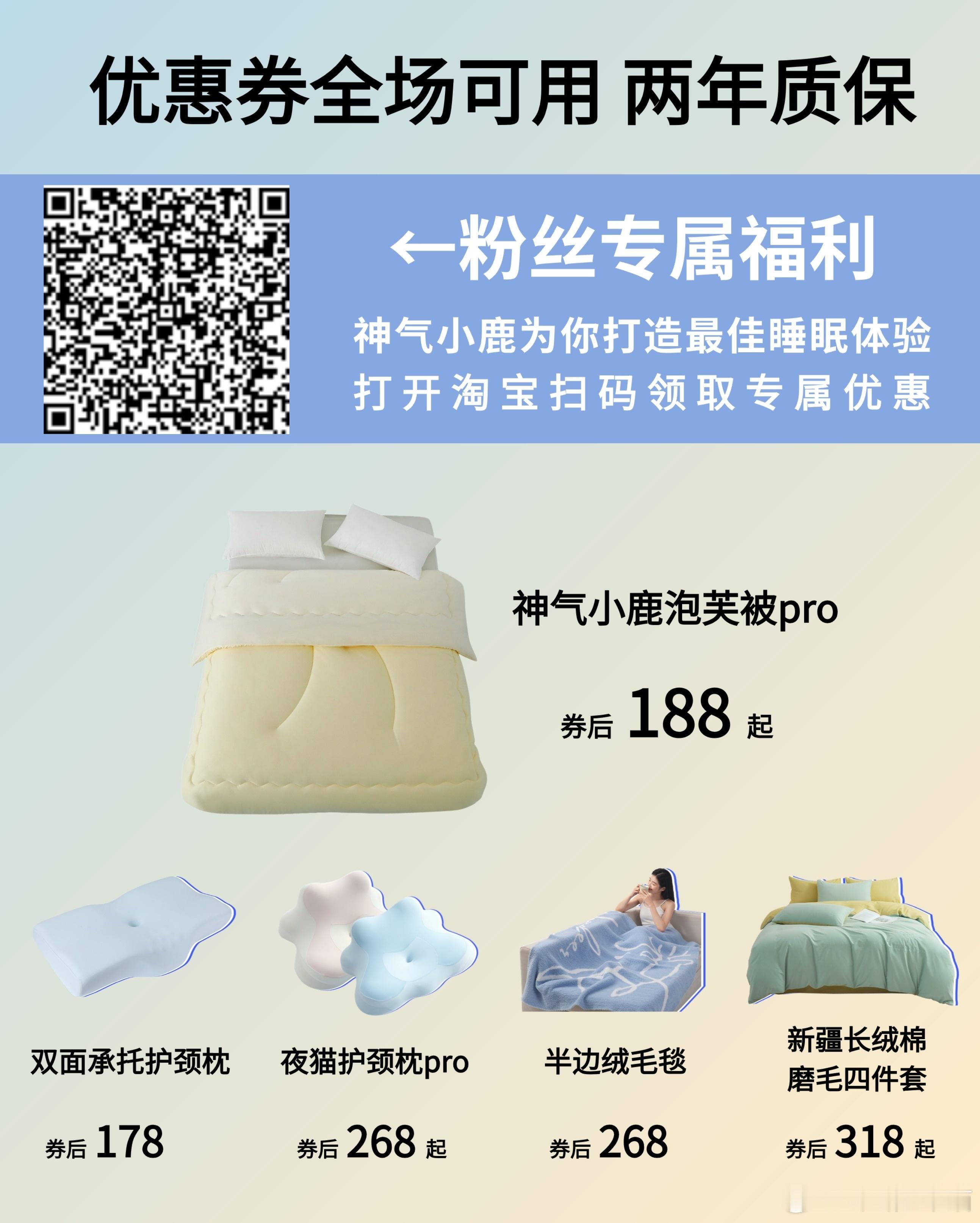 而且作为一款冬被它真的不贵,性价比高,完完全全是冬被中的六边形战士!通过三层保暖科技,很快暖遍全身,软糯靠谱的被子过秋冬拥有这条就够啦~👇🏻卷子全店通用哦,也可以保存p6到相册然后打开🍑扫一扫二维码令页取枕头等更多U绘~