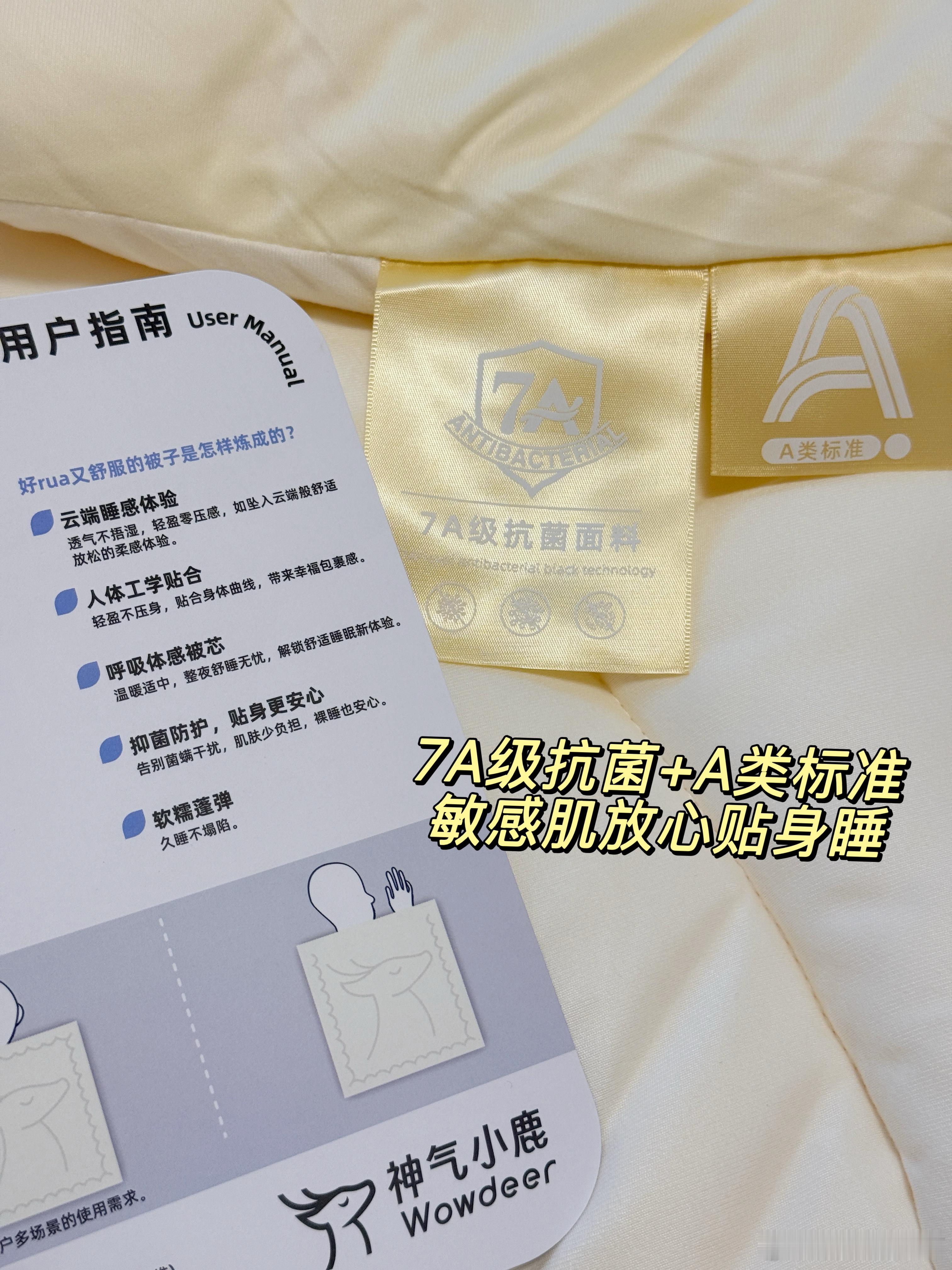 它还是7A抑菌的A类面料,这次敏感肌真能用!还添加了控敏抗菌纤维,抑菌率达到99%!一到换季就季节性过敏的宝可以试试这款被子!加不加被罩盖都行,脏了可以直接机洗,太适合懒人了。