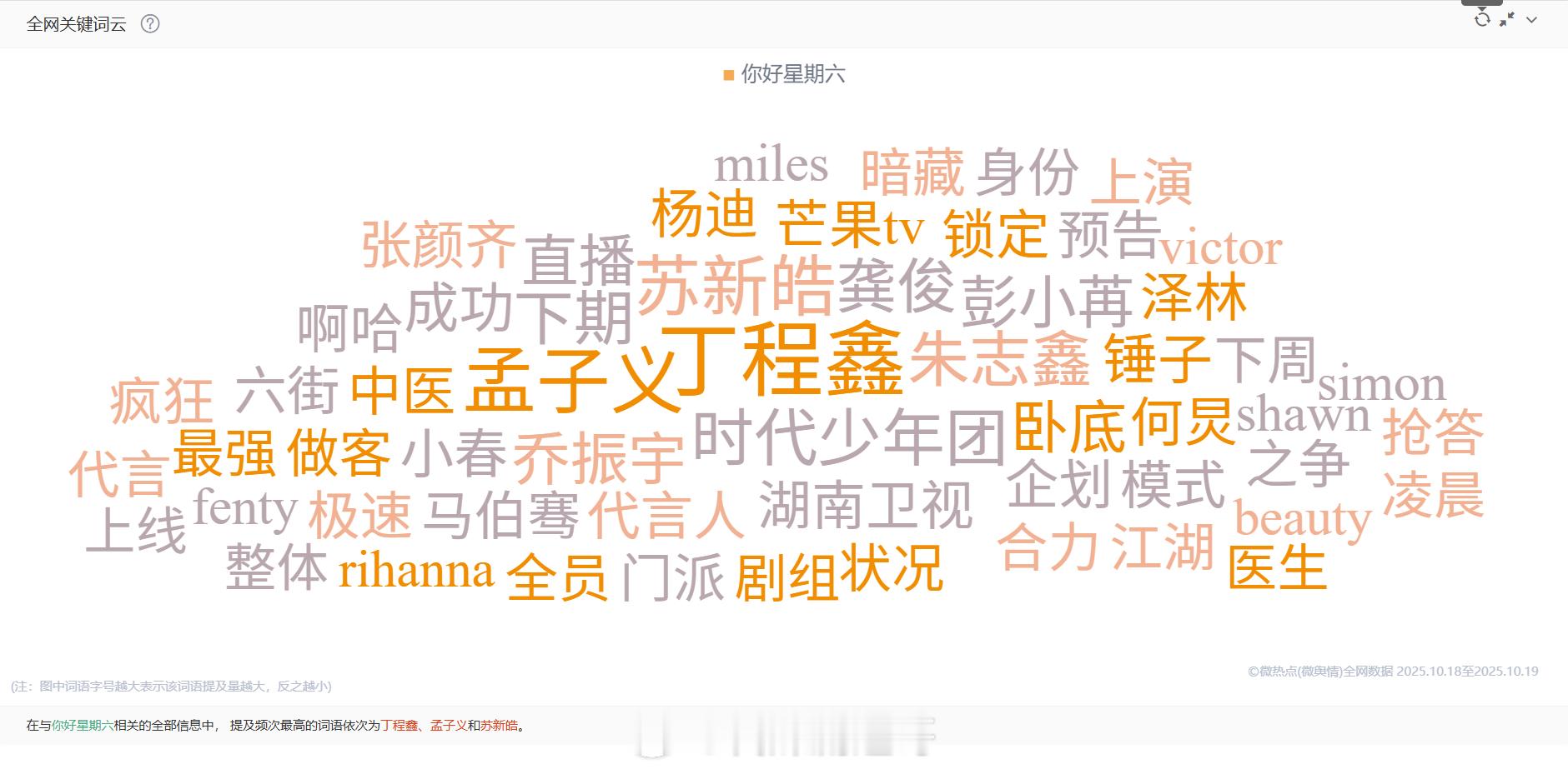 湖南卫视《你好星期六》关键词云(2025.10.18.20-10.19.20)